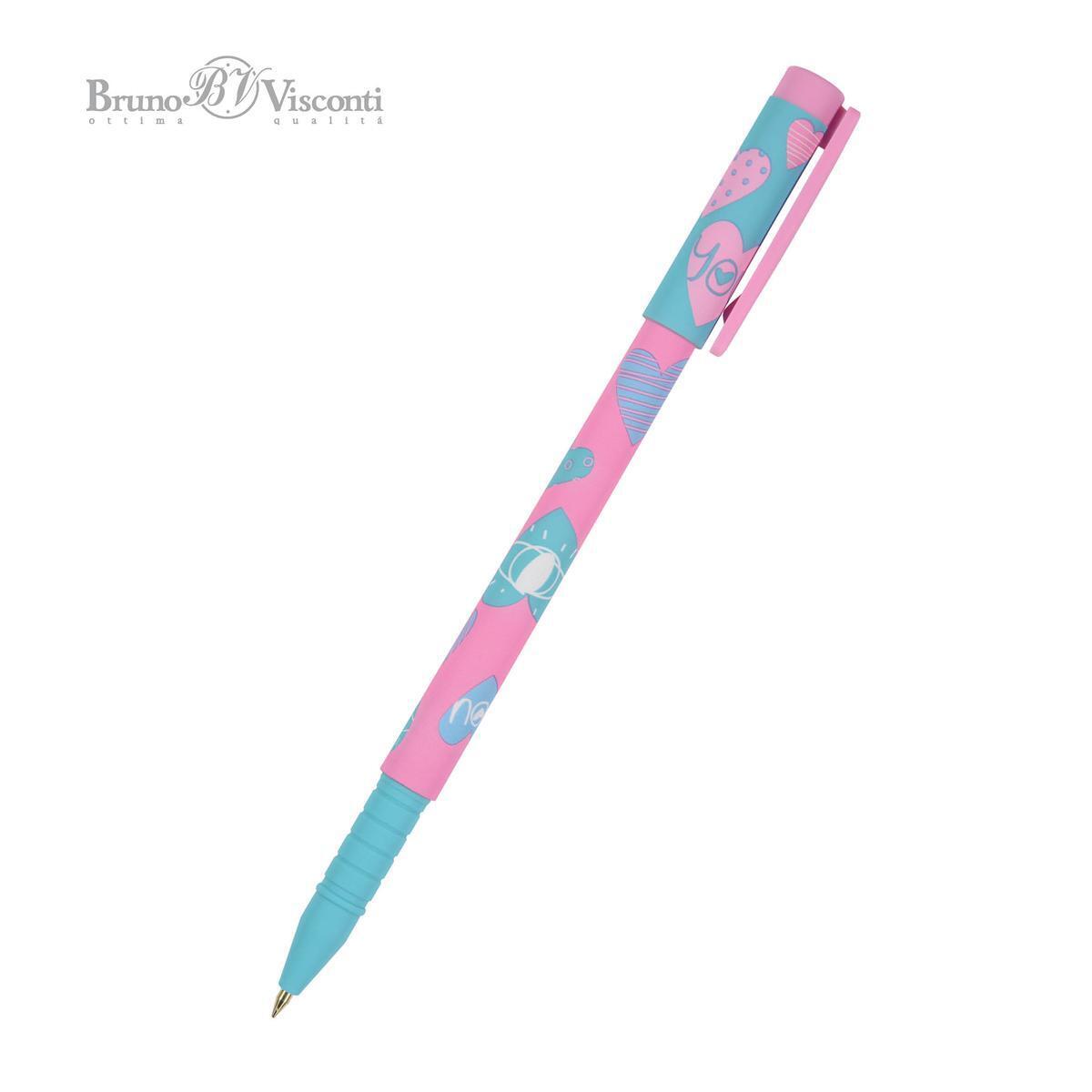 Ручка шариковая 0.5мм, синяя "FunWrite. Сердечки", Soft Touch, ABS-пластик