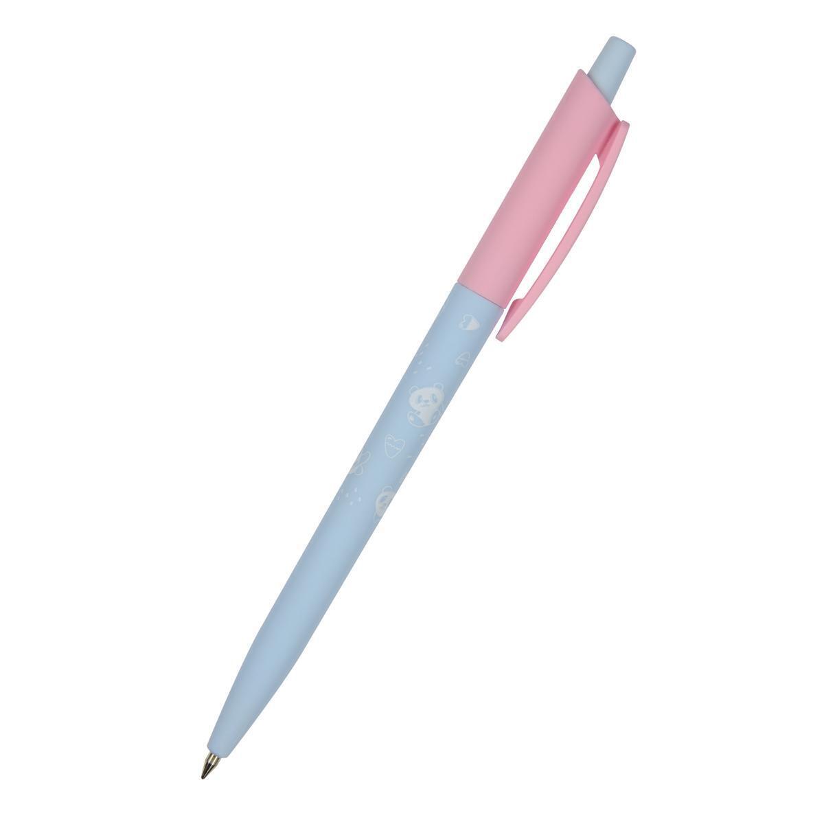 Ручка шариковая «HappyClick: Зефирные панды», 0,5 мм, сине-розовый корпус, мягкое покрытие, клип-держатель