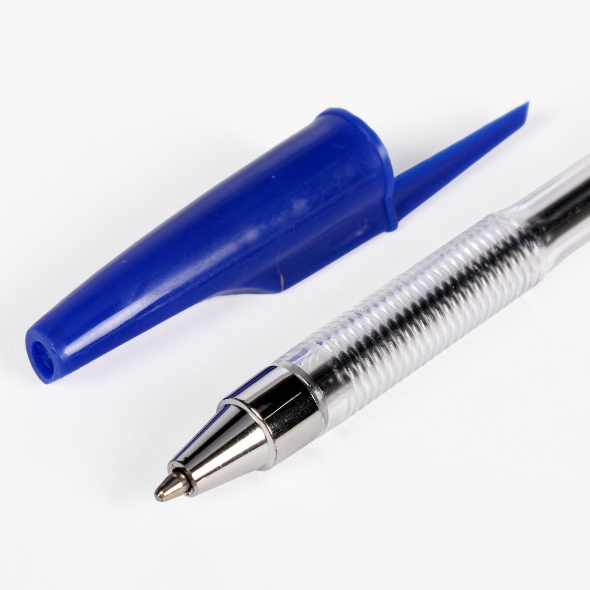 Ручка шариковая синяя 0,7 мм, прозрачный корпус с клипом, эргономичный дизайн