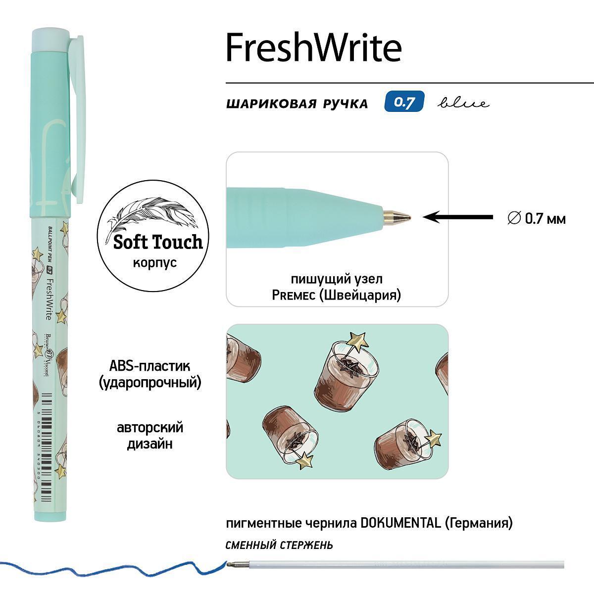 Ручка шариковая "FreshWrite. Кофемания", 0,7мм, синяя, ABS-пластик, Soft Touch