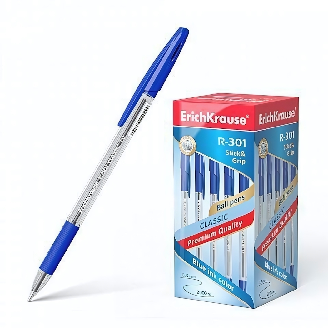 Ручка шариковая Erich Krause 'R-301 GRIP', синяя, 1 мм, резиновый грип, сменный стержень