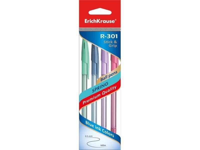 Ручка шариковая ErichKrause R-301 Spring Stick&Grip, 4 цвета в наборе, 0.5мм, мягкое письмо