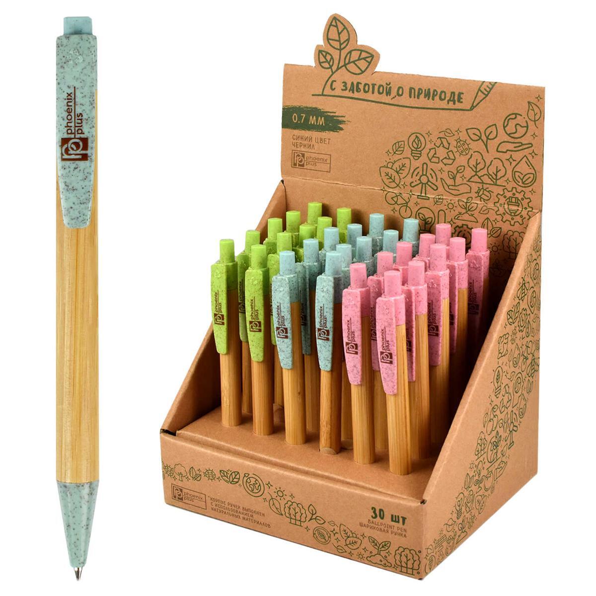 Ручка шариковая автоматическая, синяя, 0.7мм "С заботой о природе 2", бамбуковый корпус