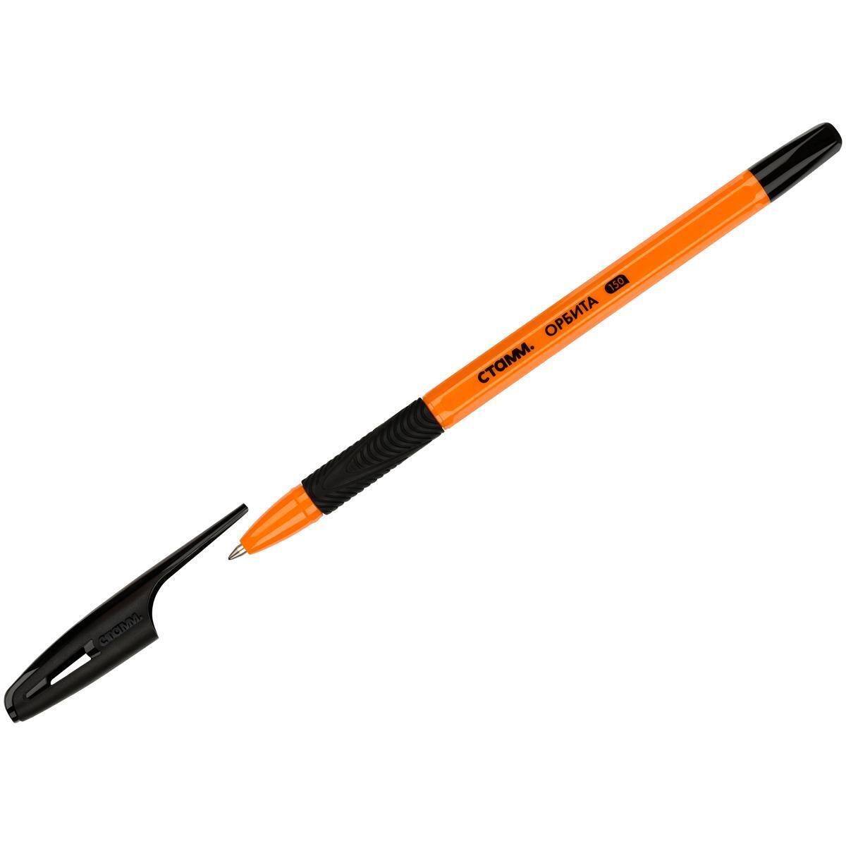 Ручка шариковая Стамм "Орбита 150", черная, 0.7мм, оранжевый корпус, удобный грип