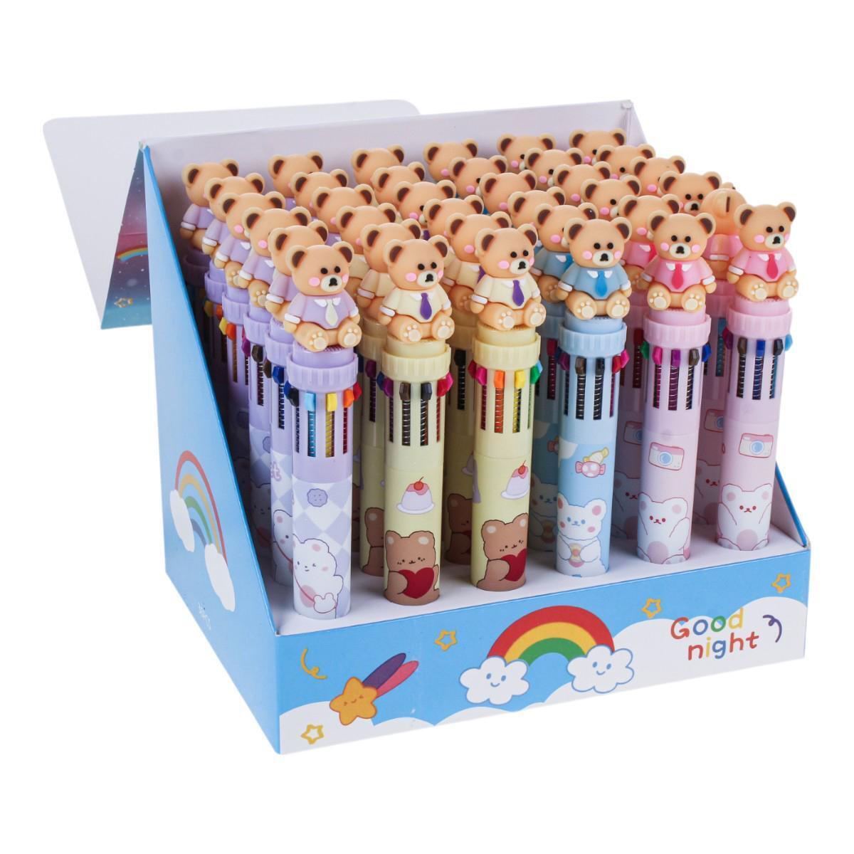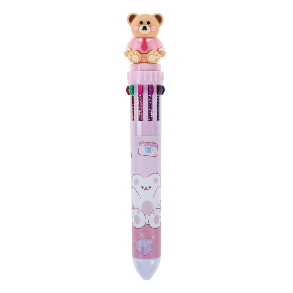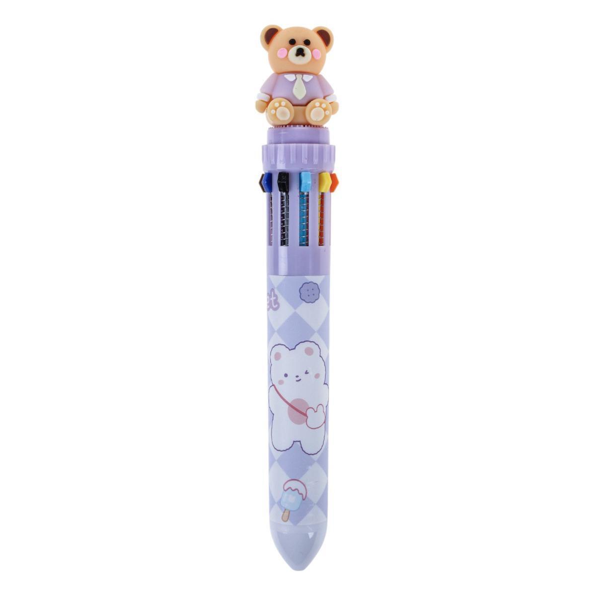 Эта многоцветная ручка станет отличным спутником для вашего ребенка, добавляя яркие цвета и игривый стиль в каждую запись. С 10 разноцветными стержнями и милой фигуркой мишки, она не только удобна в использовании, но и привлекает внимание, что делает процесс письма более увлекательным.