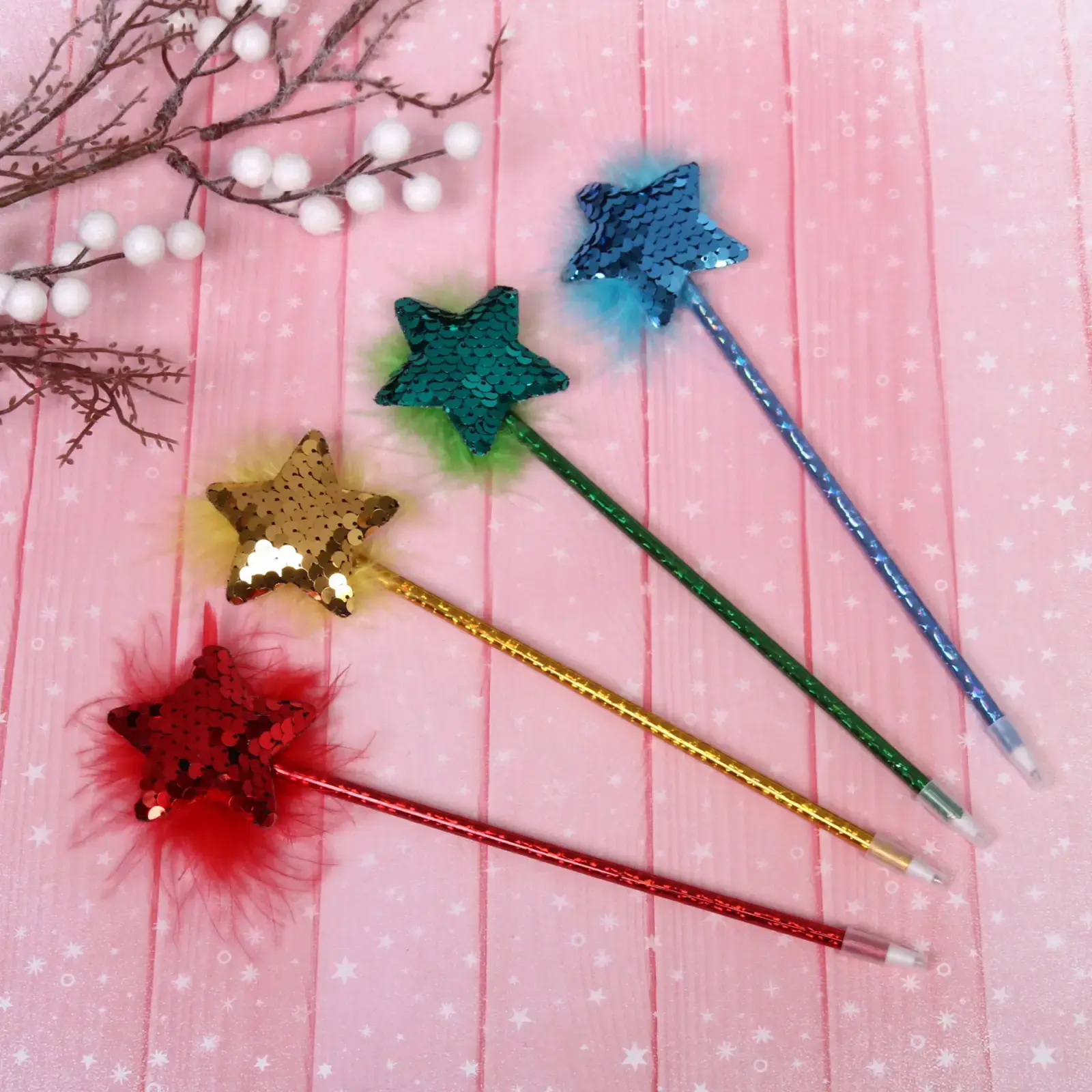 Эта уникальная ручка станет не только полезным инструментом для письма, но и ярким аксессуаром для вашего новогоднего настроения. С четырьмя различными дизайнами, каждая ручка украшена блестящей звездой и пушистыми элементами, что делает её идеальной для подарка или использования на праздниках.