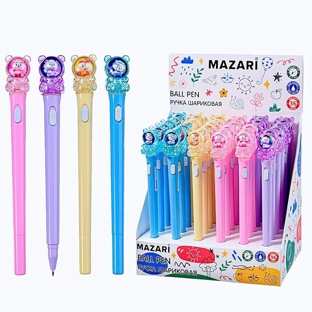 Ручка шариковая "Мишка в скафандре" с подсветкой, 0,7 мм, 4 цвета, пластиковый корпус (Mazari)