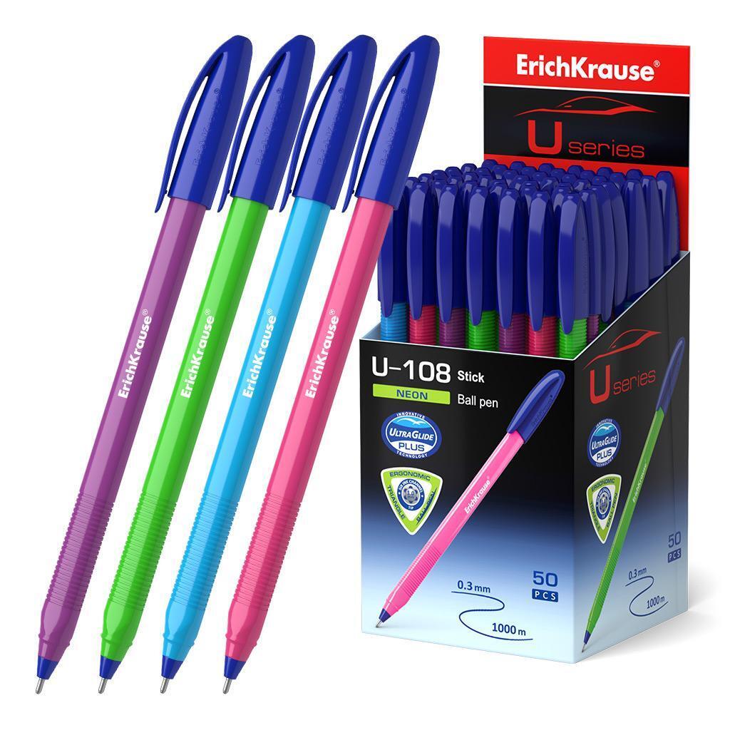 Удобная и яркая шариковая ручка ErichKrause U-108 в неоновых цветах