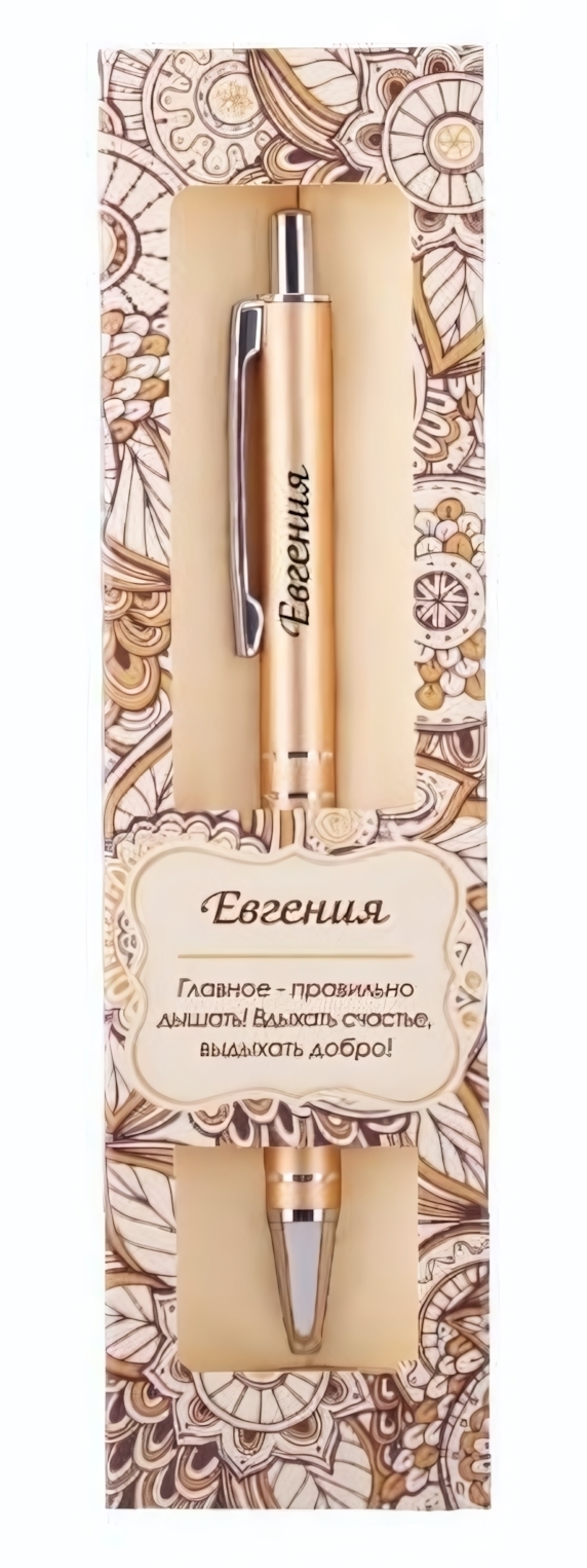 Подарите особенному человеку не просто ручку, а символ вдохновения и позитива! Эта сувенирная шариковая ручка "Elegant Pen Евгения" станет прекрасным напоминанием о важности каждого момента. Золотистый корпус с блестящей отделкой придает ей изысканный вид, а подарочная упаковка с трогательным пожеланием добавляет душевности.