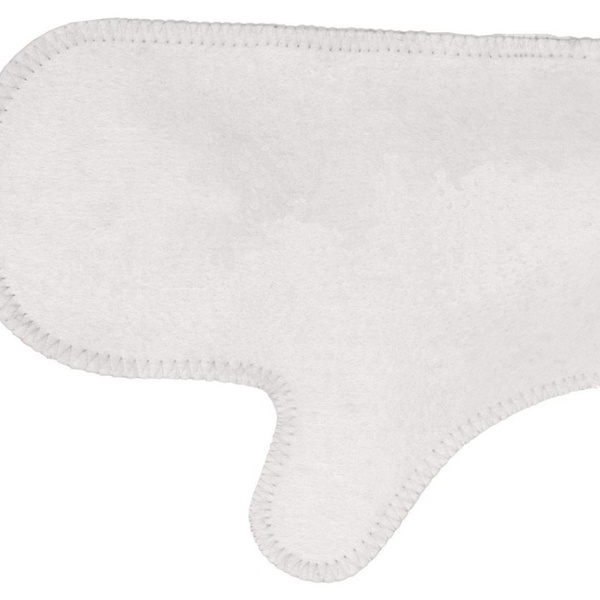Рукавица выполнена из качественного текстиля, который обеспечивает долговечность и практичность. Белый цвет придаёт изделию свежесть и чистоту, а текстурированная поверхность помогает лучше захватывать и массировать кожу. Размеры рукавицы не указаны, но она предназначена для комфортного использования вручную.