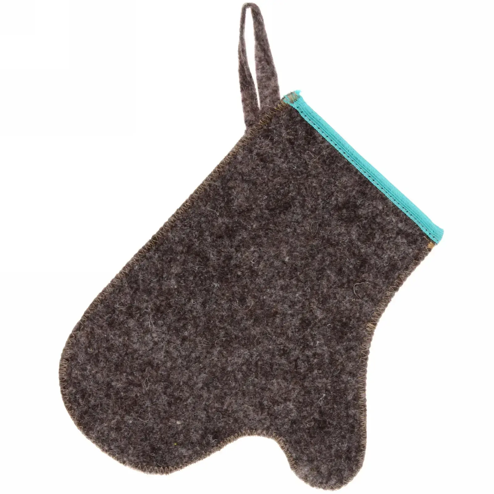 Рукавица для сауны темно-коричневая, войлок, с бирюзовым кантом