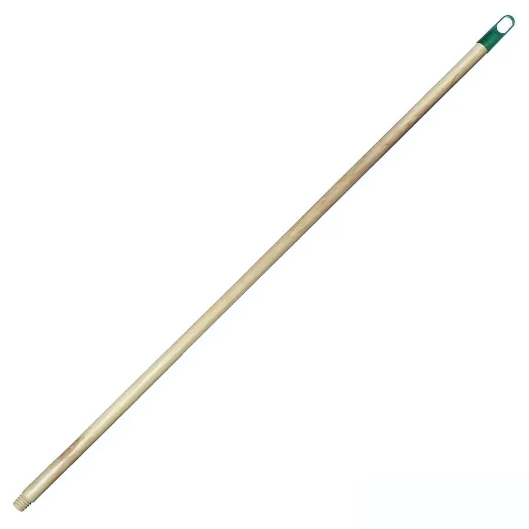 Черенок деревянный 120 см с резьбой, цвет в ассортименте, зеленая ручка, обработанная поверхность