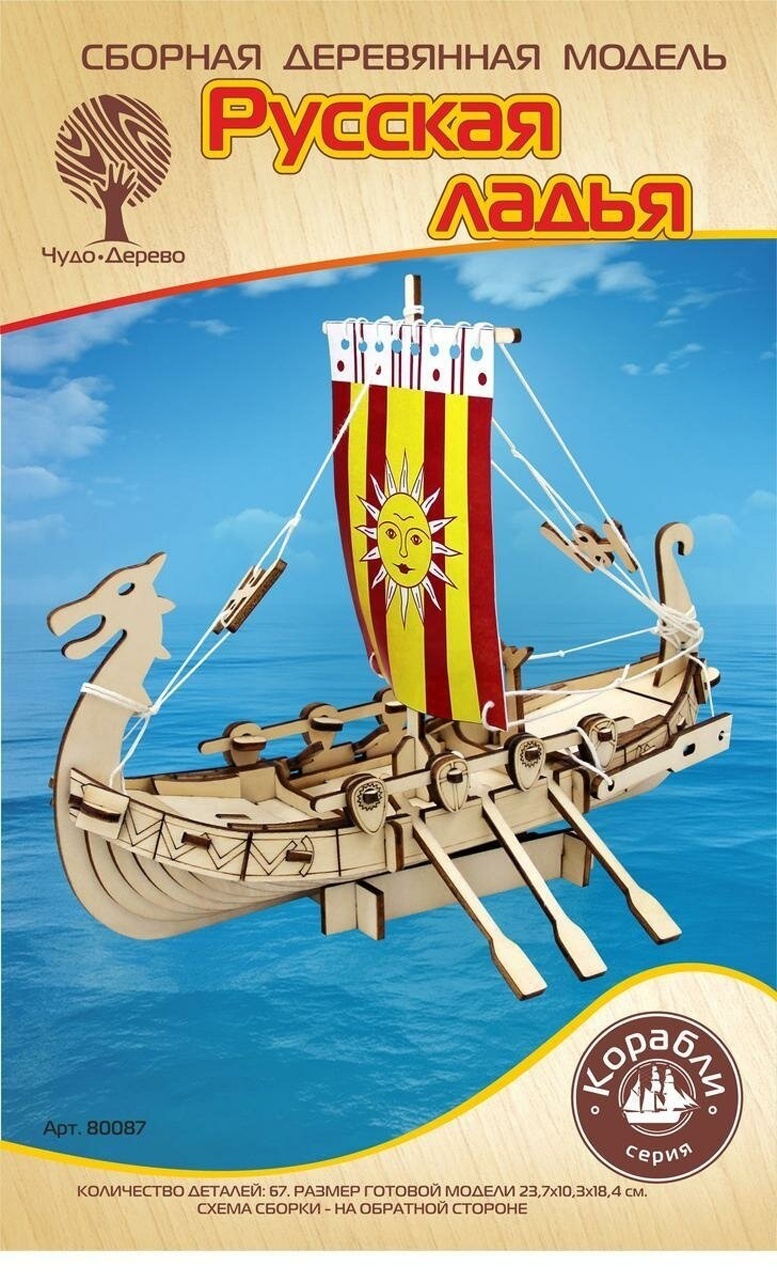 Деревянный конструктор 'Русская ладья', серия 'Корабли', 67 деталей, размер 23,7х10х18,4 см