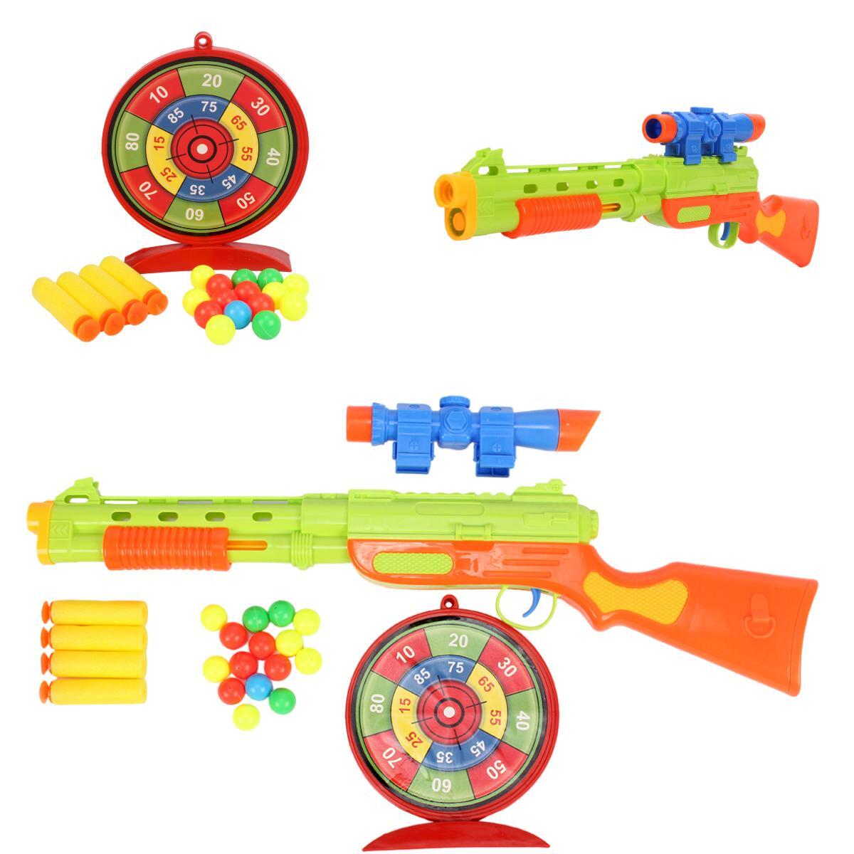 Яркая игрушечная винтовка с мягкими снарядами превратит детскую комнату в полигон для увлекательных тренировок. Комплект разработан для активных игр без риска травм — пластиковые пули и шарики полностью безопасны при правильном использовании.