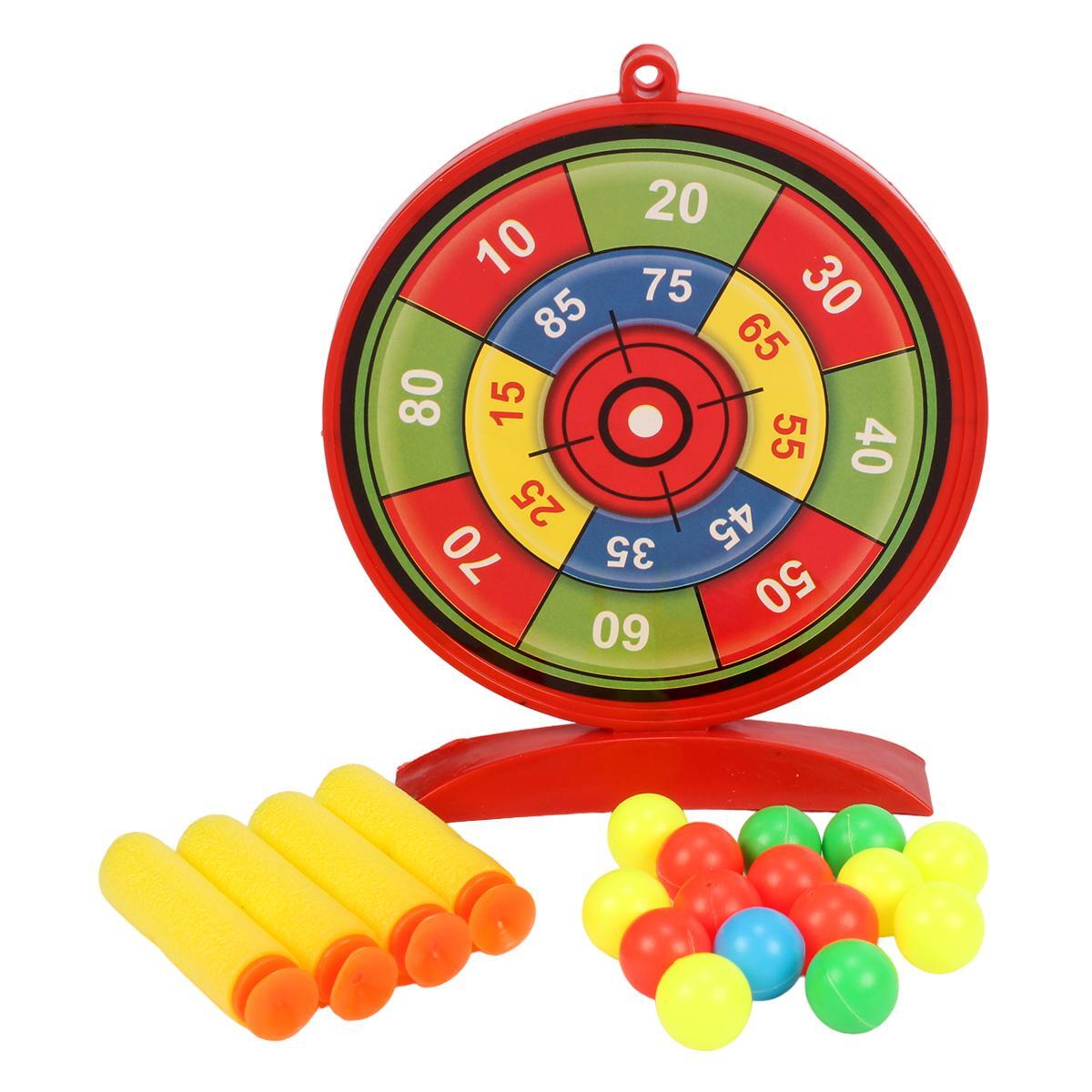 Комплект развивает координацию движений и глазомер — прицеливание требует концентрации и точности. Мишень со сменными секторами позволяет устраивать турниры на меткость с друзьями или родителями. Лёгкий пластиковый корпус (43,5 см в длину) подходит для детей от 5 лет.