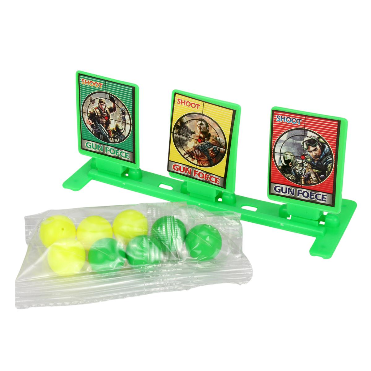 Развивайте меткость и координацию ребёнка с ярким игровым комплектом! В набор входит всё необходимое для организации подвижных соревнований: стилизованный пистолет, разноцветные шарики и мишени с военной тематикой.