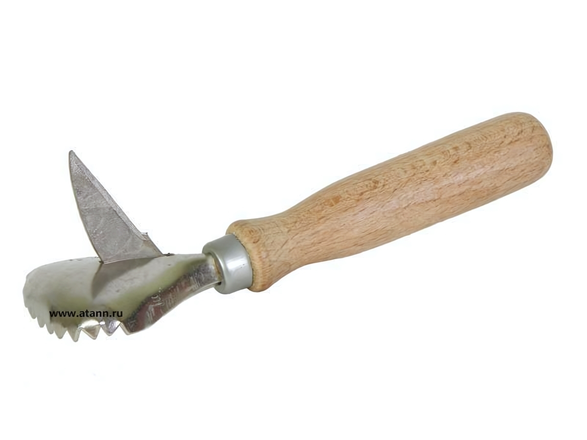 - Металлическая рабочая часть с крупными зубцами эффективно снимает чешую без повреждения мяса;