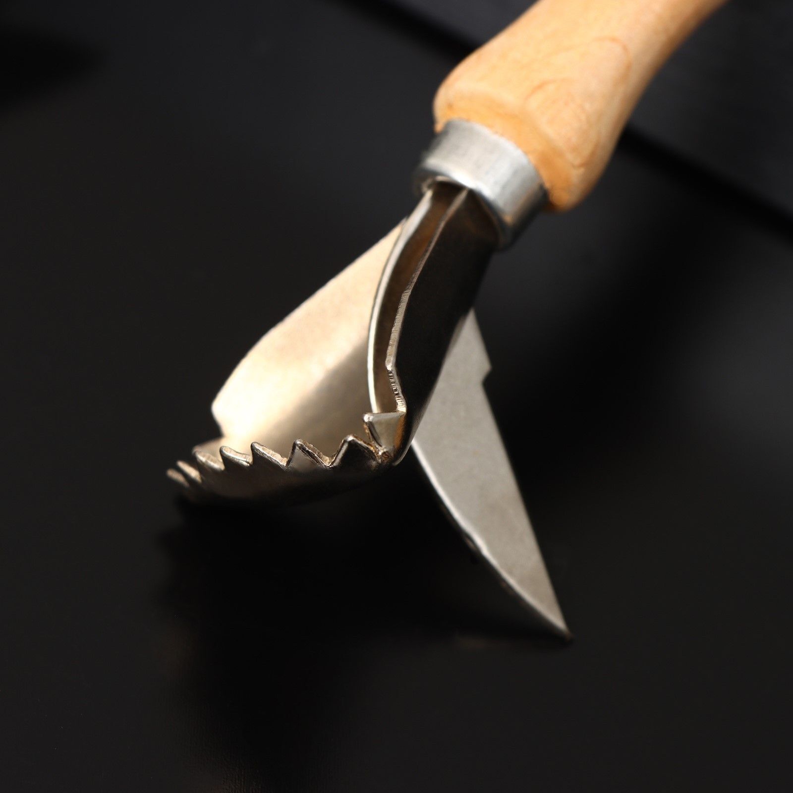 Сочетание эргономичной деревянной ручки и прочного металлического лезвия делает чистку продуктов легкой и безопасной. Инструмент создан для тех, кто ценит качественную кухонную утварь с традиционным дизайном.
