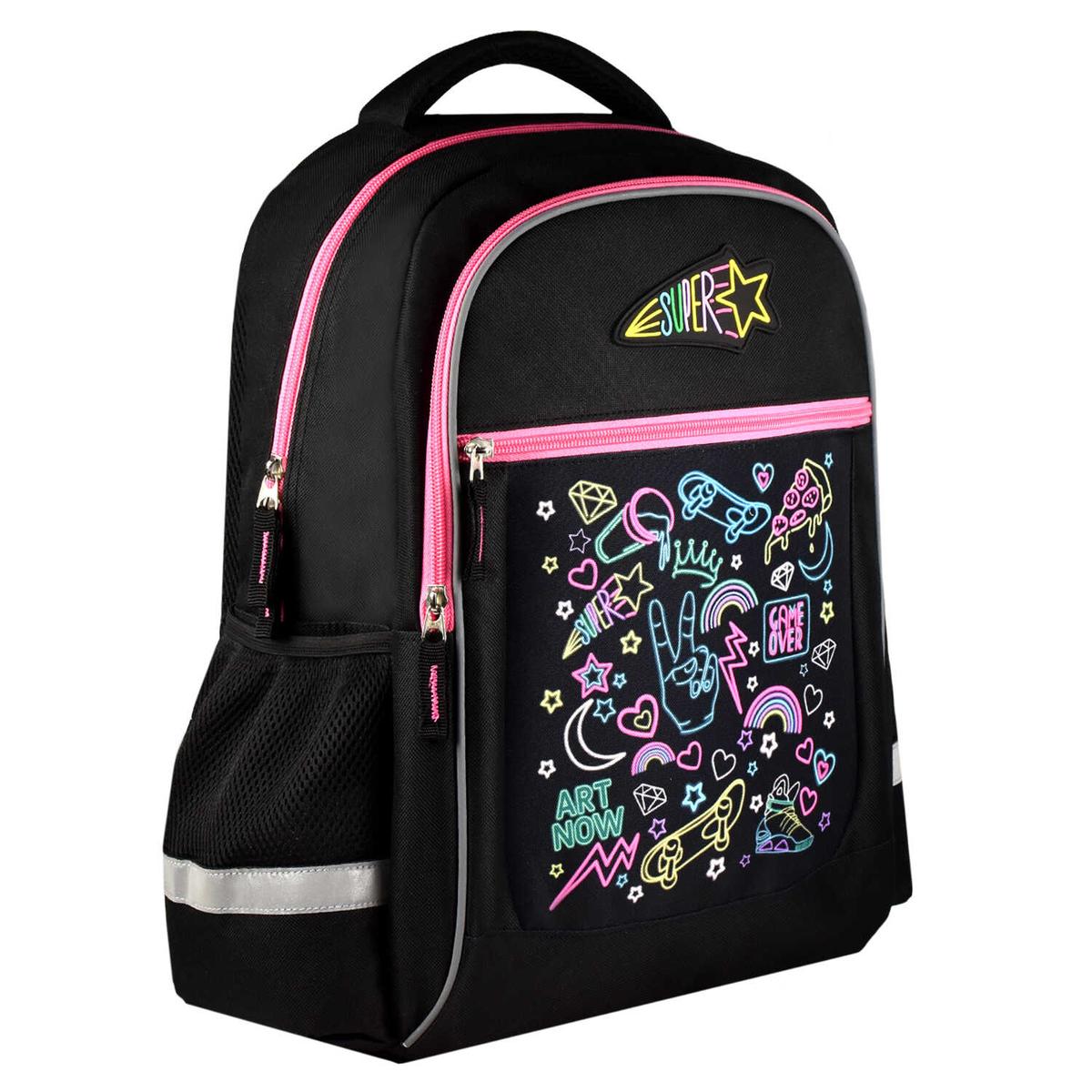 Позвольте вашему ребенку выделяться среди сверстников с ярким дизайном в стиле стрит-арт. Черно-розовое сочетание и неоновые элементы делают этот рюкзак идеальным выбором для современных подростков.
