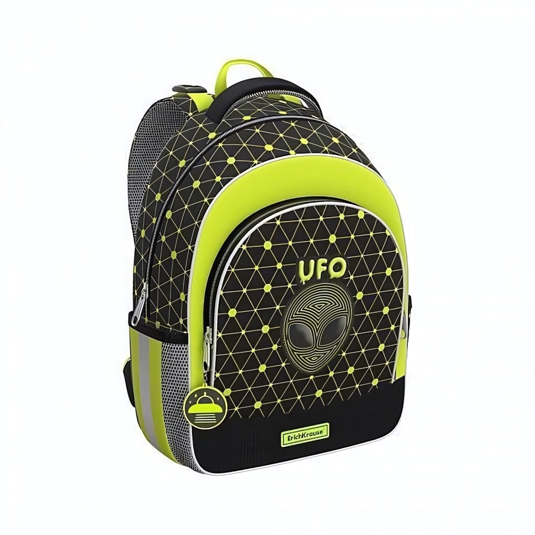 Облегчённая конструкция весом всего 520 г делает его одним из самых легких в своей категории, снижая нагрузку на спину при ежедневной носке. Эргономичная спинка и мягкие лямки обеспечивают комфорт даже при длительном использовании. Выразительный дизайн с логотипом UFO и геометрическими узорами создаёт уникальный стиль, привлекающий внимание.