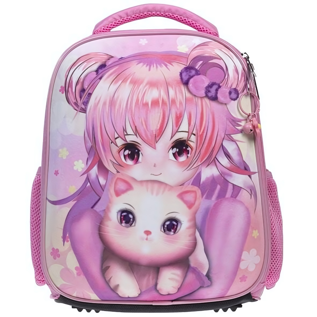 Рюкзак детский "Аниме с котиком", 35х27х13см, розовый/фиолетовый, 12л, эргономичный