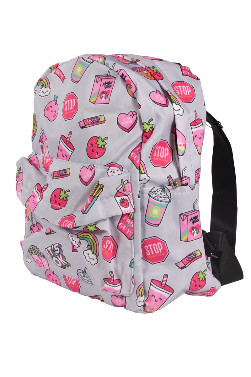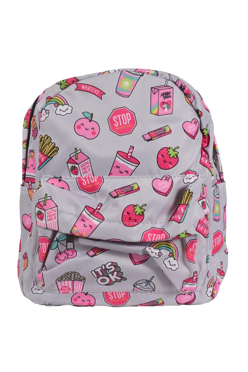 Рюкзак детский "Вкусняшки", серый с ярким принтом, 28х22х19 см – стильный и вместительный