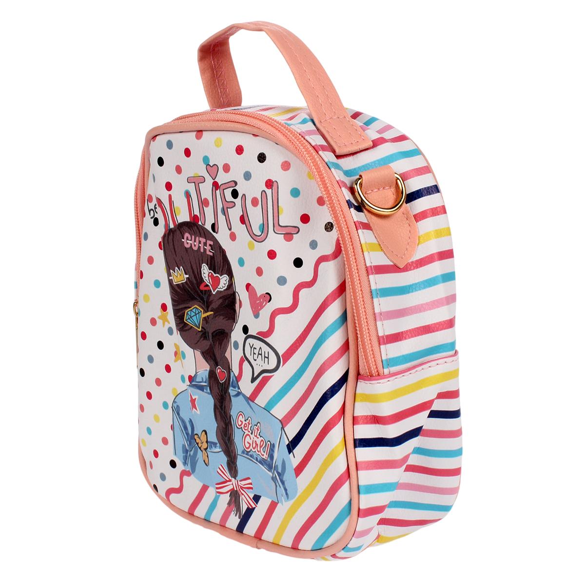 Рюкзак детский для девочки, 17.5x8x19см, кожзам, яркий дизайн с надписями и рисунком