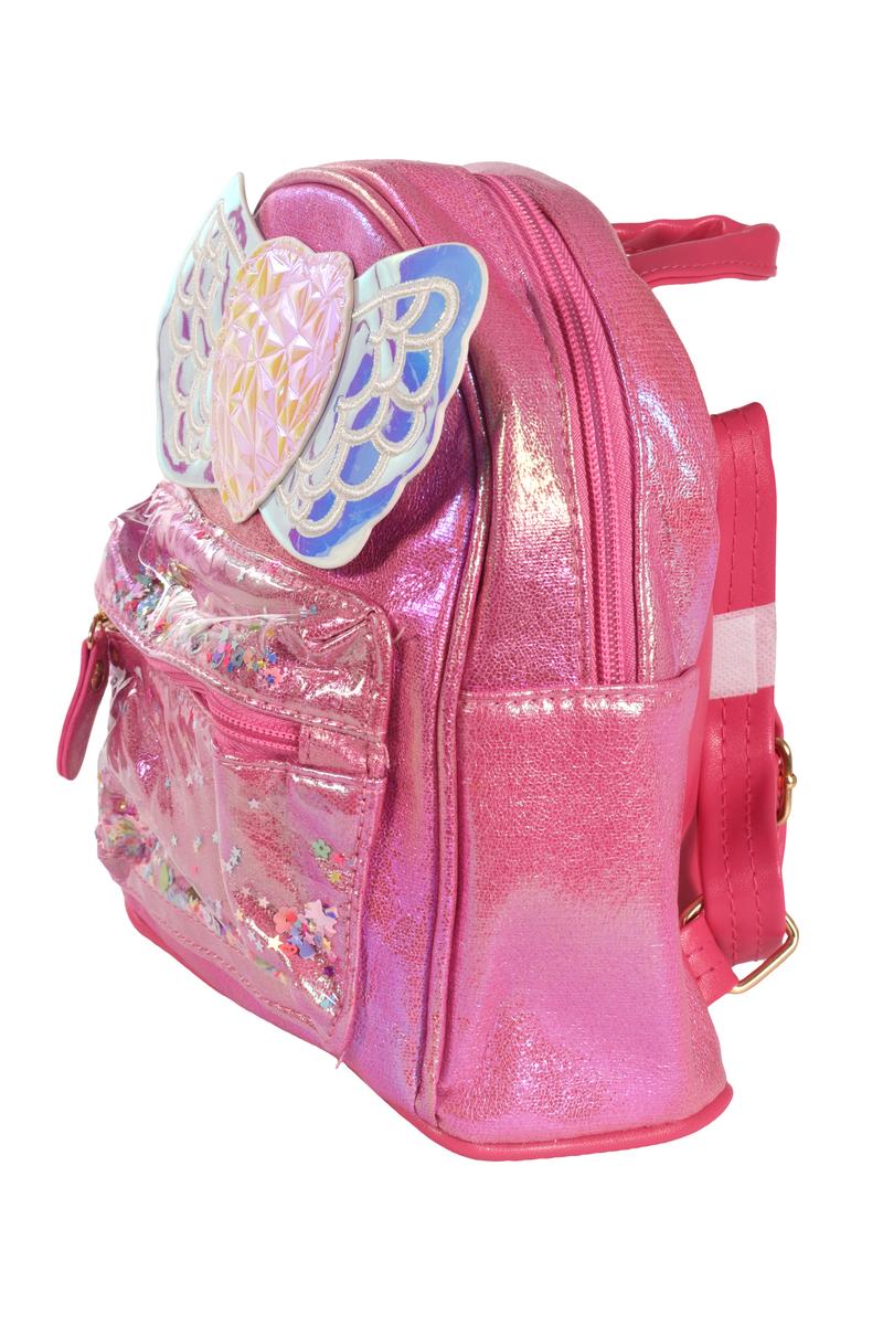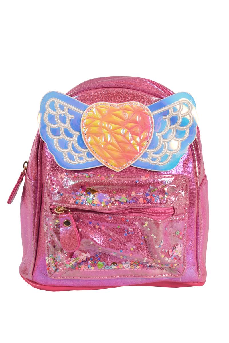 Этот яркий рюкзак с переливающимся сердцем и крыльями станет любимым аксессуаром вашей маленькой модницы. Блестящая поверхность привлекает внимание и дарит радость каждый день.