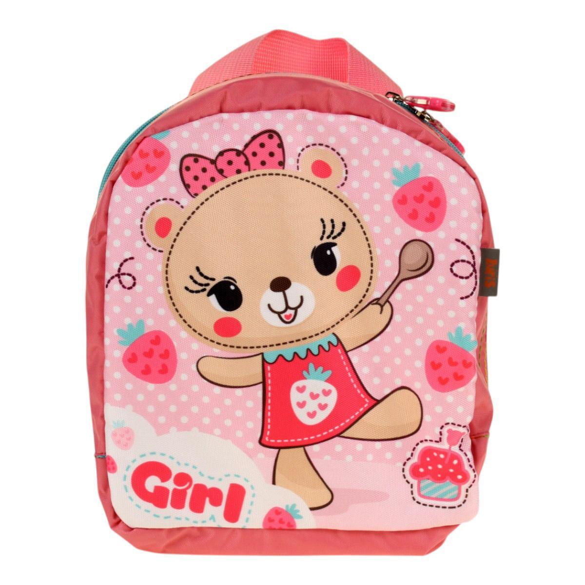 - Яркий дизайн: Розовый цвет, изображение медвежонка с клубникой и надпись "Girl" – рюкзак обязательно понравится вашей девочке.