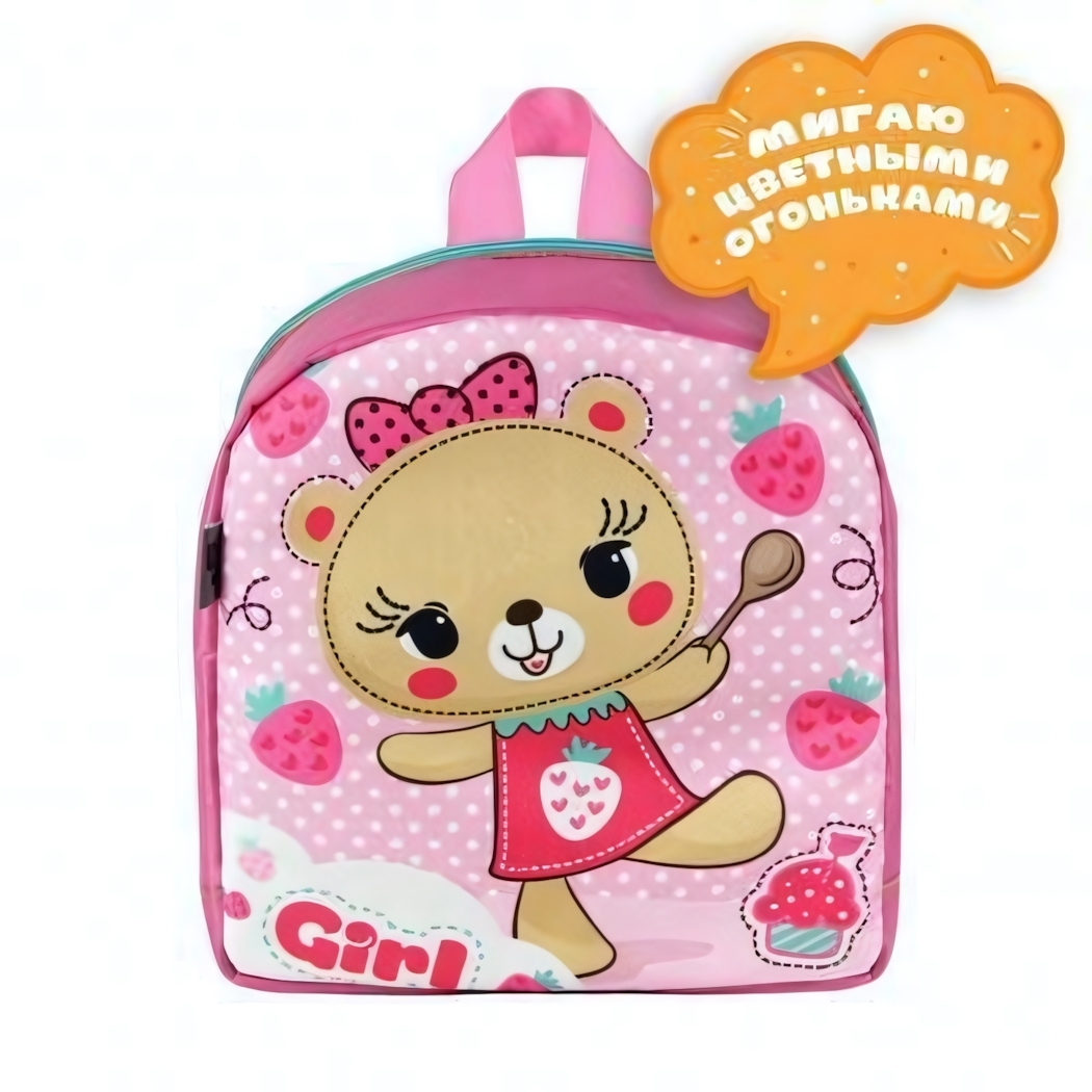 Рюкзак детский "Клубничка" Luris, розовый, 20х22х8см, светодиодный элемент, для девочки