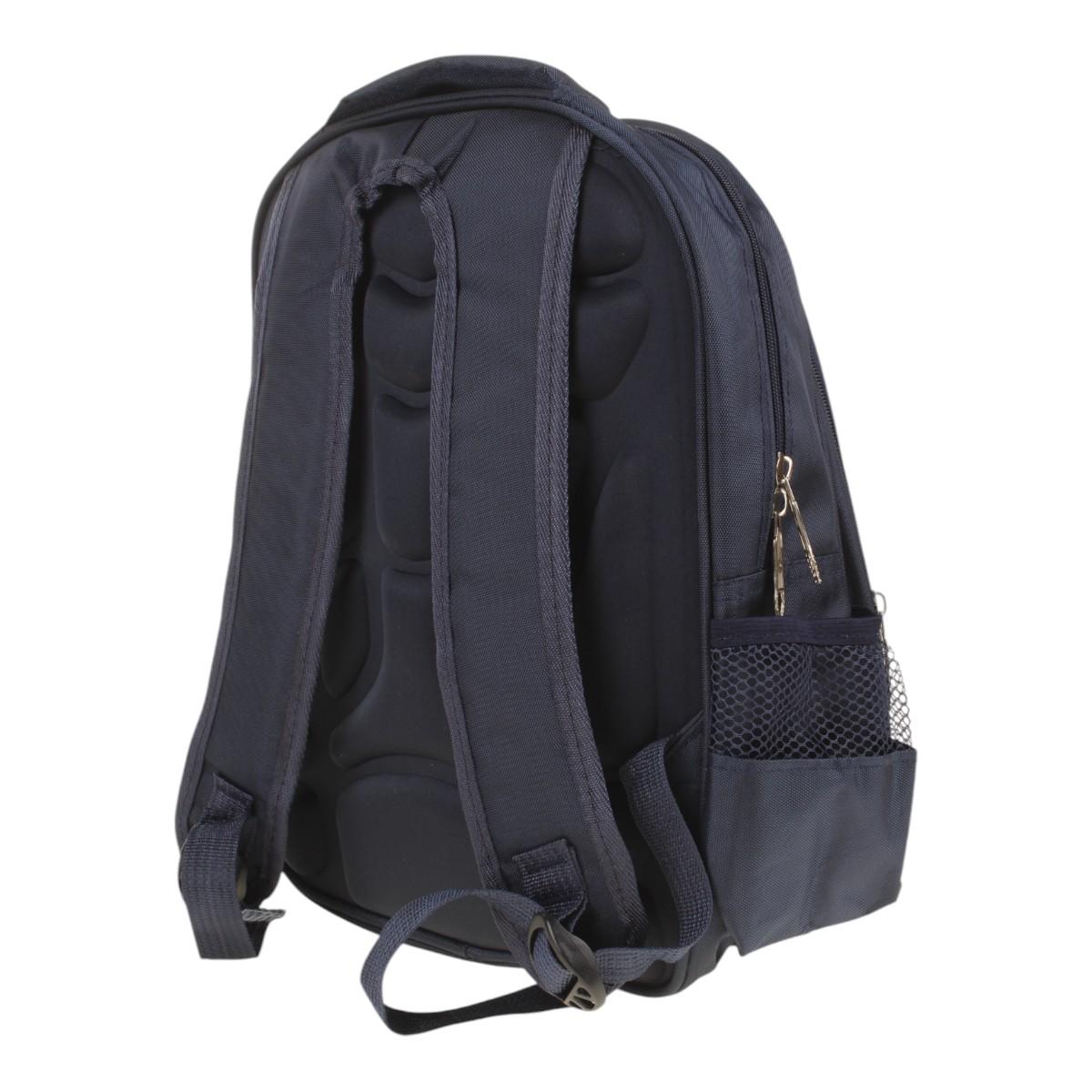 Темно-синий фон с динамичным принтом в космической тематике подчеркнет индивидуальность владельца. Жесткий каркас передней панели сохраняет форму, а водоотталкивающая ткань защищает содержимое от дождя. Сетчатые вставки на спинке и лямках обеспечивают вентиляцию, предотвращая потение.