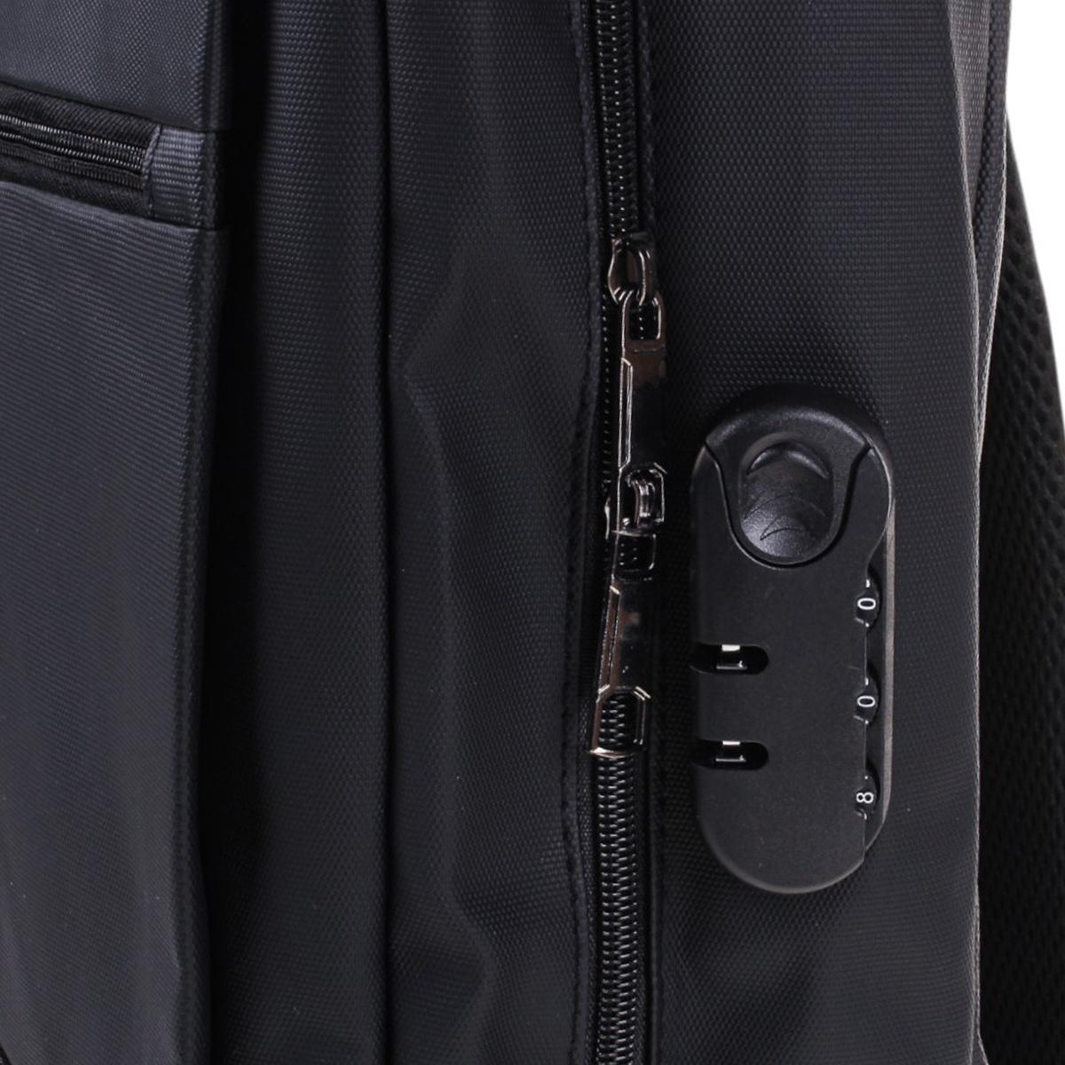 Рюкзак молодежный с USB-разъемом, водонепроницаемый, 43х31,5х12 см, черный, кодовый замок