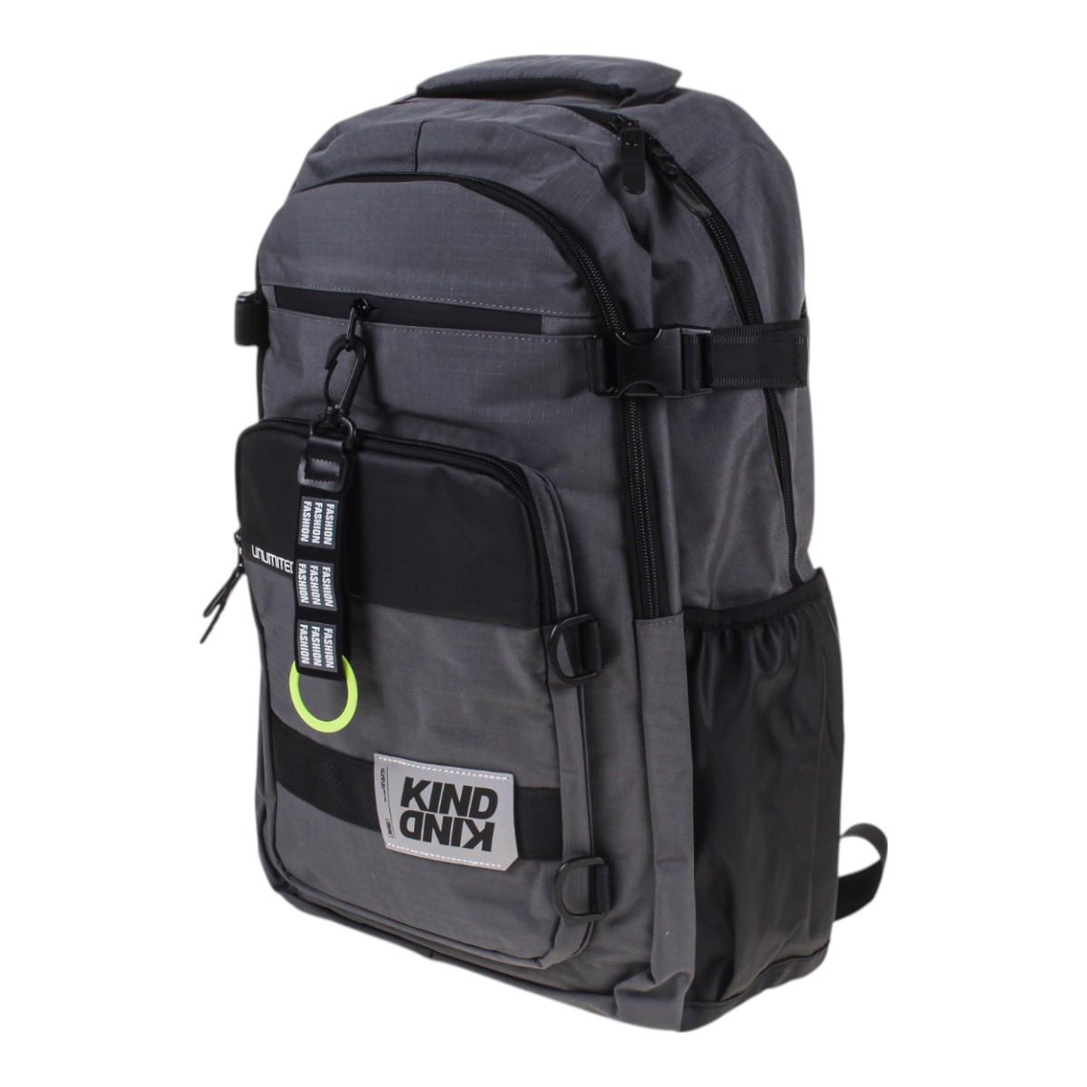 Рюкзак молодежный с 2 отделениями, 51х30х20 см, эргономичная спинка, 4 кармана и брелок, чёрно-серый
