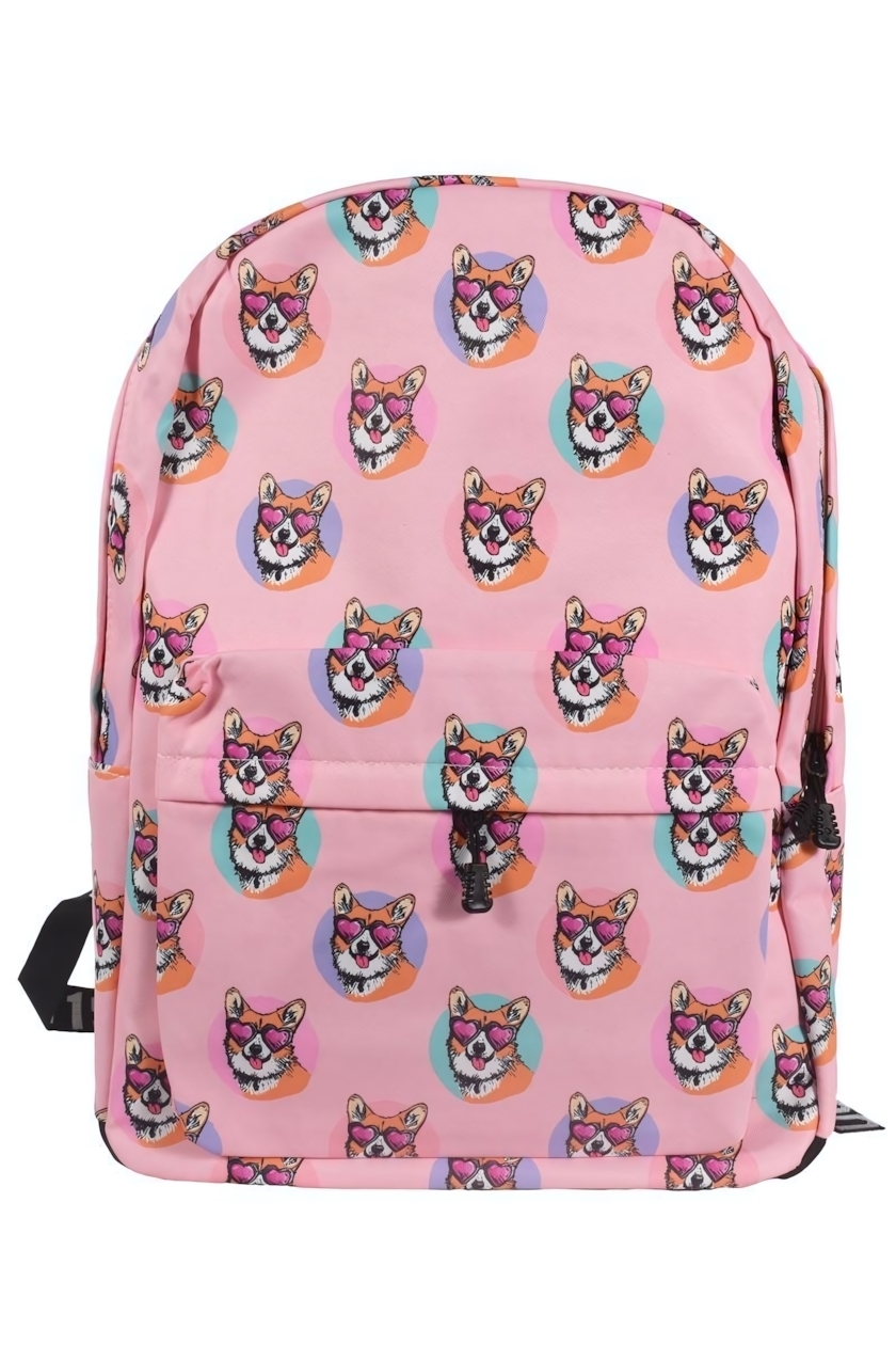 Рюкзак молодежный "Корги" 40*30*17см, розовый, с принтом собак, вместительный