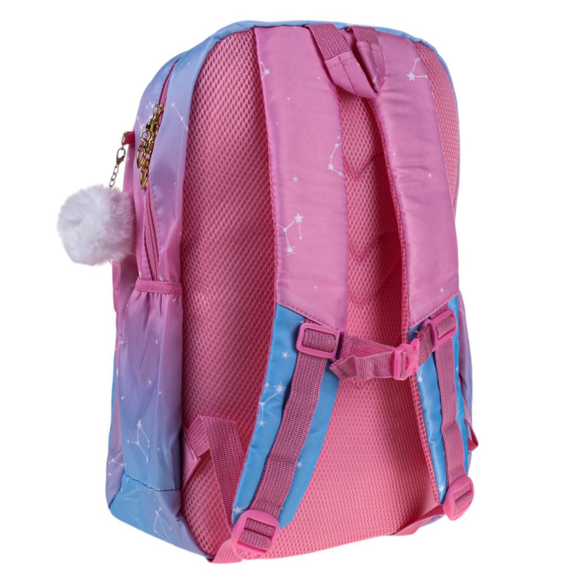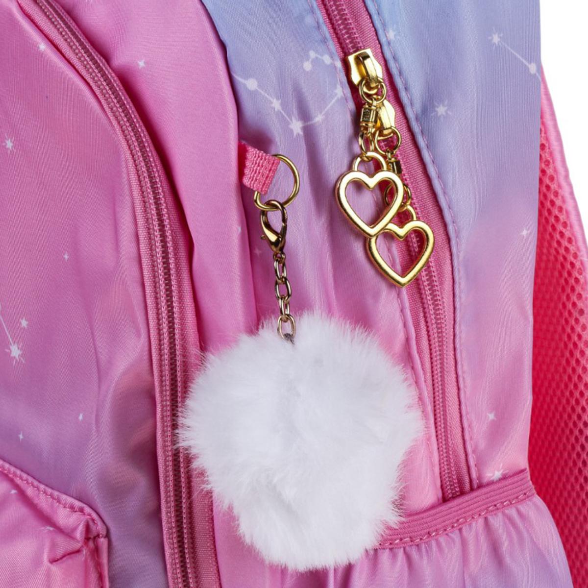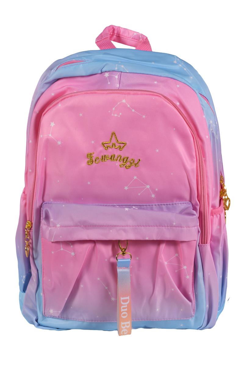 Этот рюкзак станет вашим идеальным спутником на каждый день. Его элегантная градиентная окраска от нежно-розового до глубокого голубого сочетается с ультрамодными элементами: золотистыми акцентами и вышивкой в виде звезд.