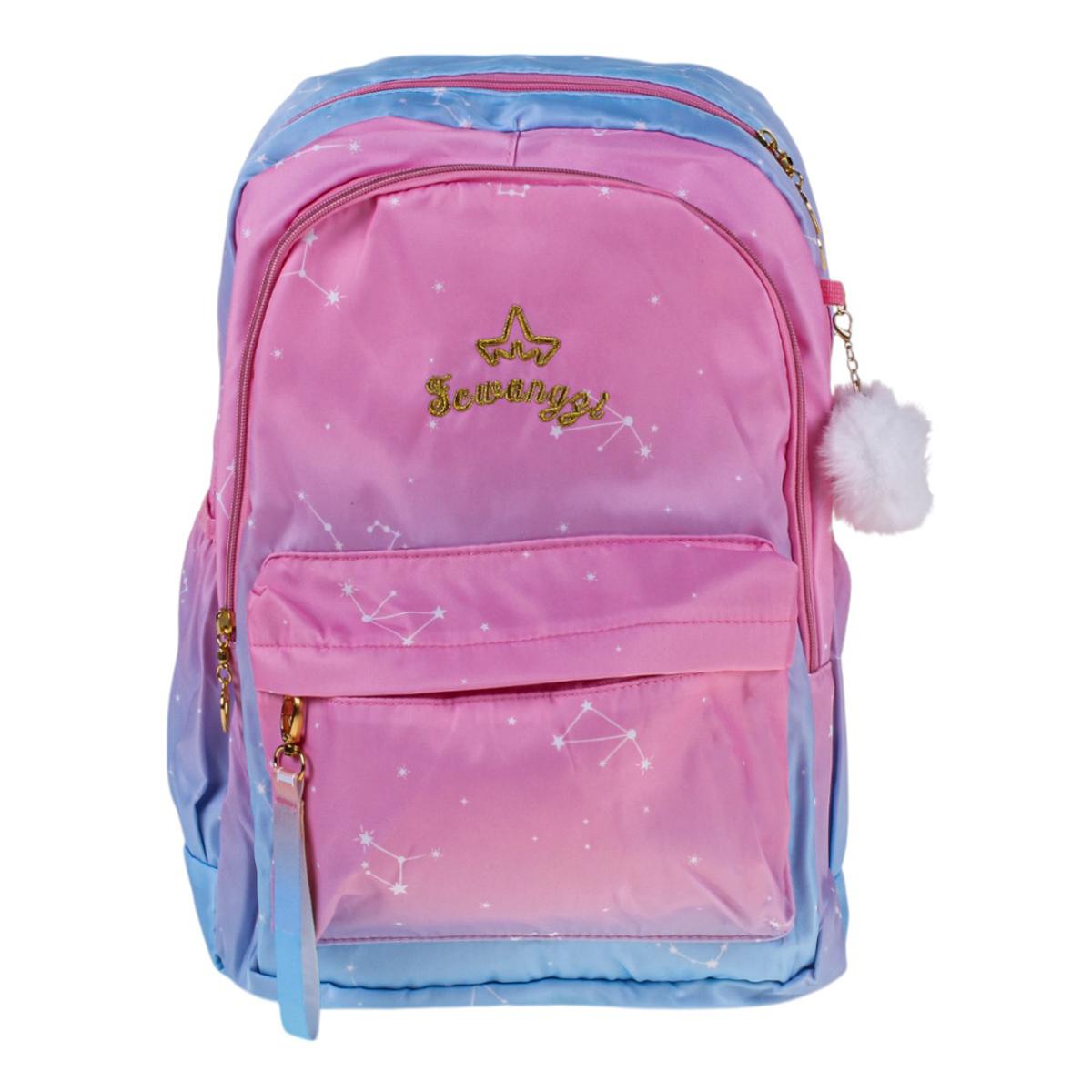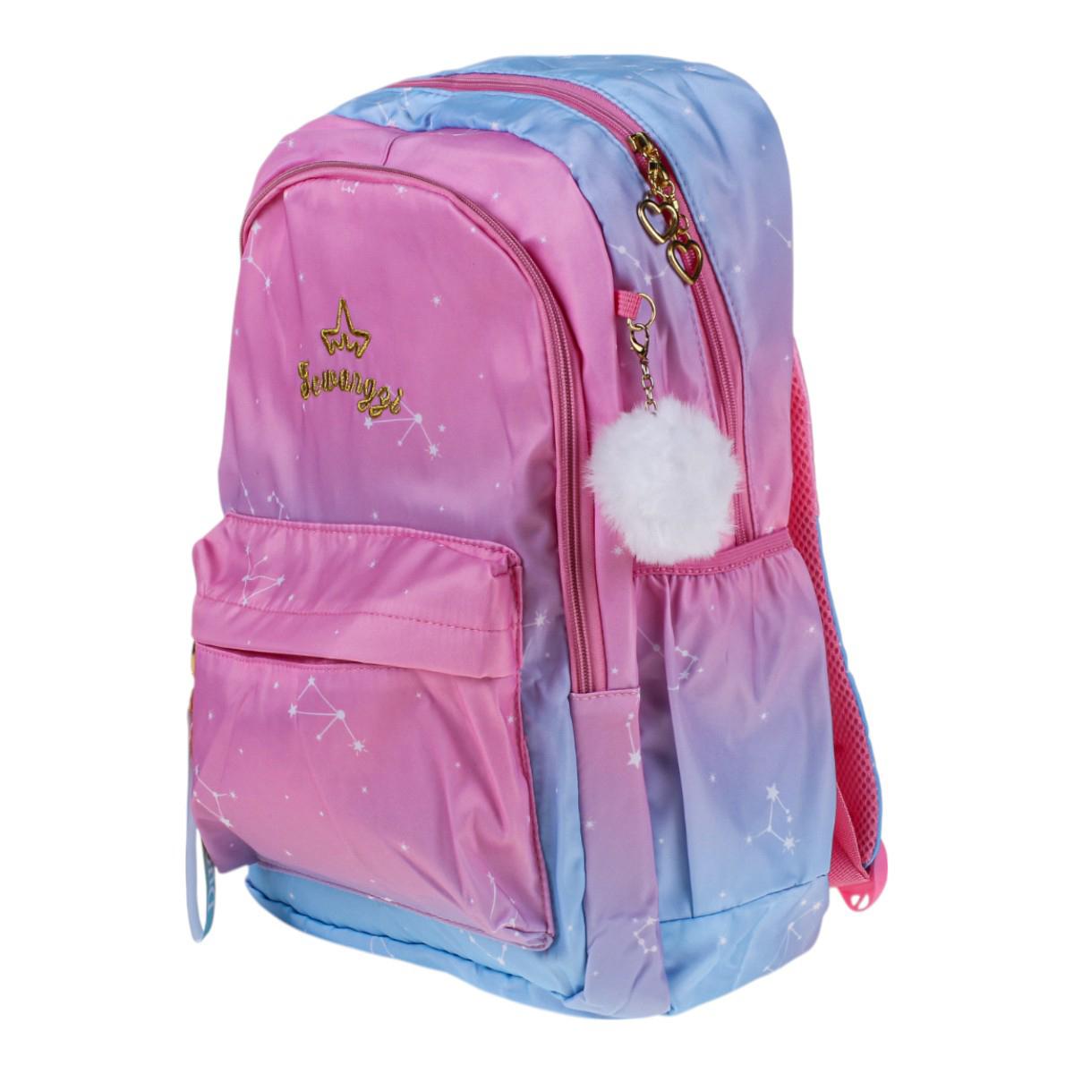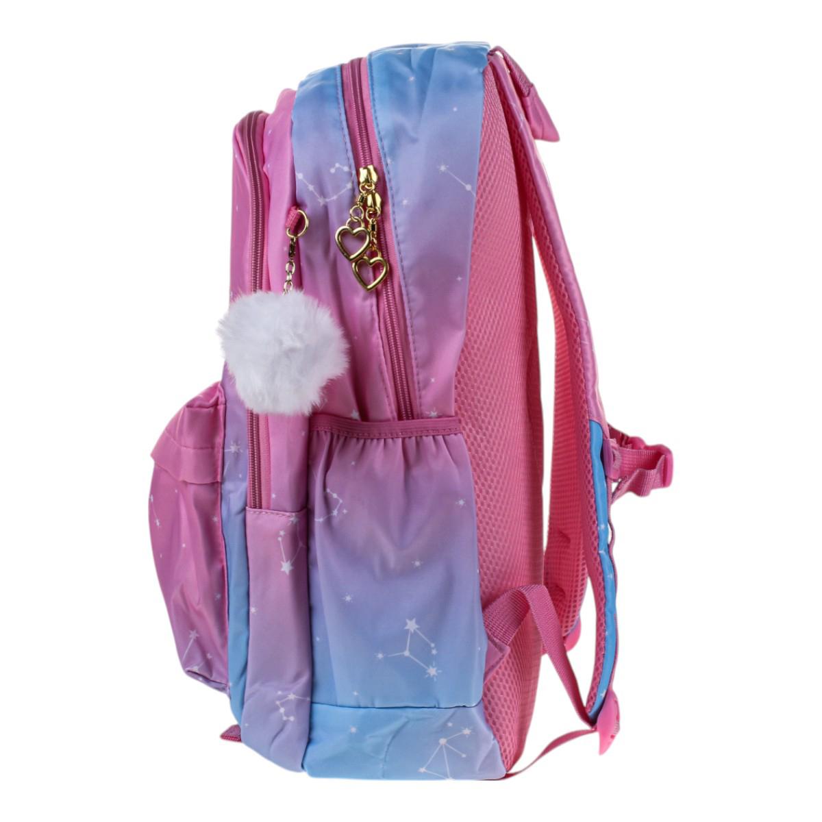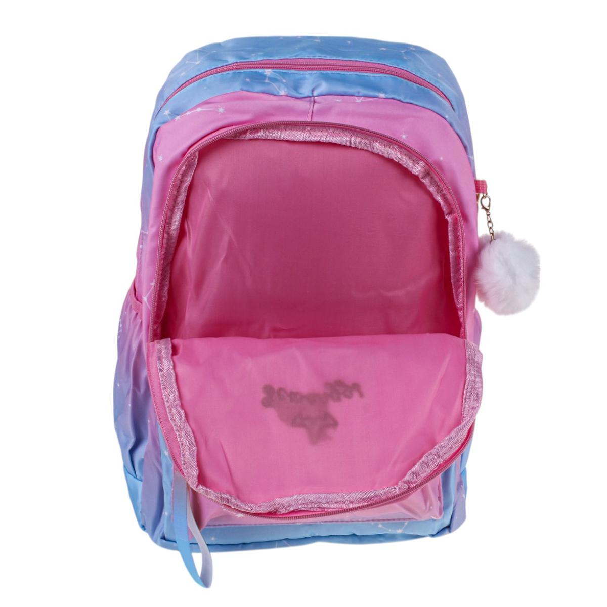 Этот рюкзак станет вашим идеальным спутником на каждый день. Его элегантная градиентная окраска от нежно-розового до глубокого голубого сочетается с ультрамодными элементами: золотистыми акцентами и вышивкой в виде звезд.