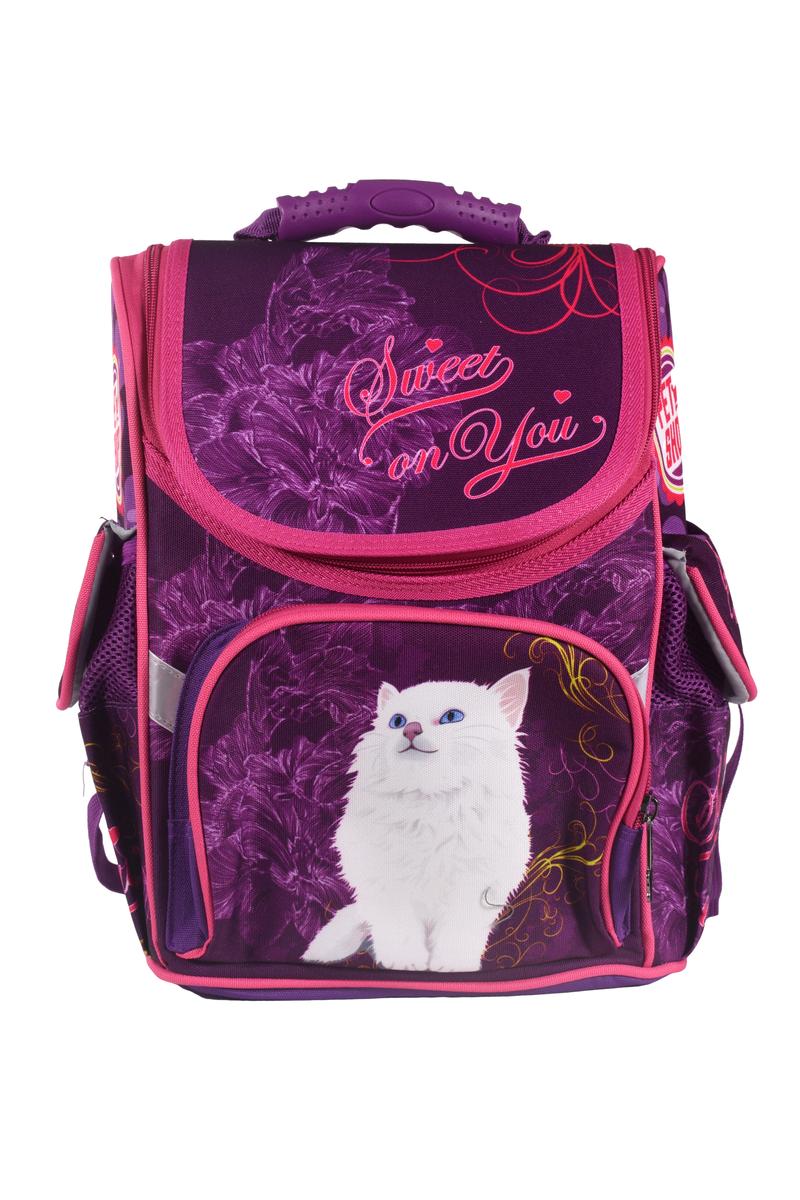 Рюкзак школьный 33*29*16см, ортопедическая спинка, принт с кошкой, текстиль
