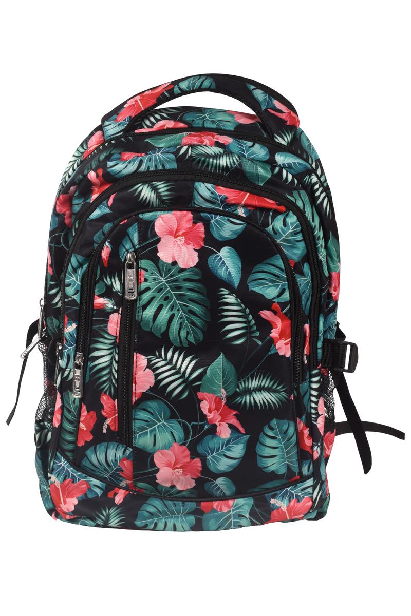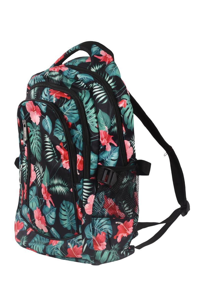 Объем 19 л (46x32x13 см) оптимален для переноски учебников, тетрадей и личных вещей. Яркий цветочный принт на черном фоне делает рюкзак модным акцентом школьного образа.