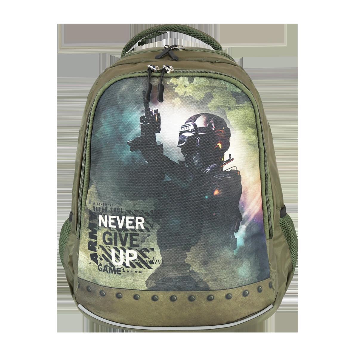 Рюкзак школьный 'Снайпер' 28*41*17см, 2 отдела, анатомические вставки, зеленый