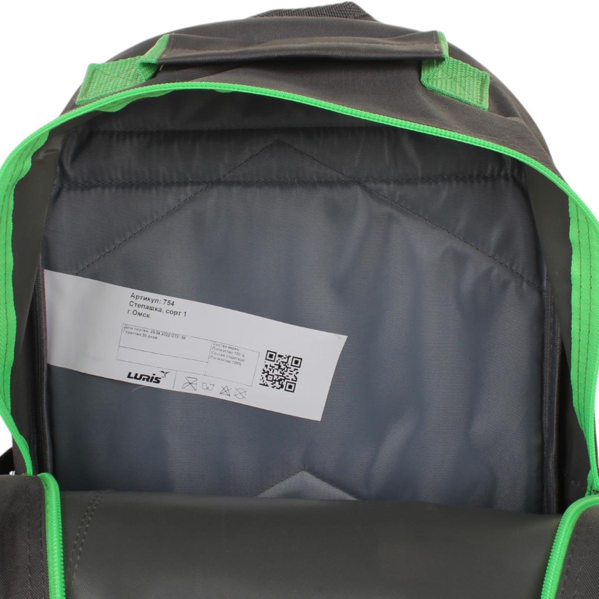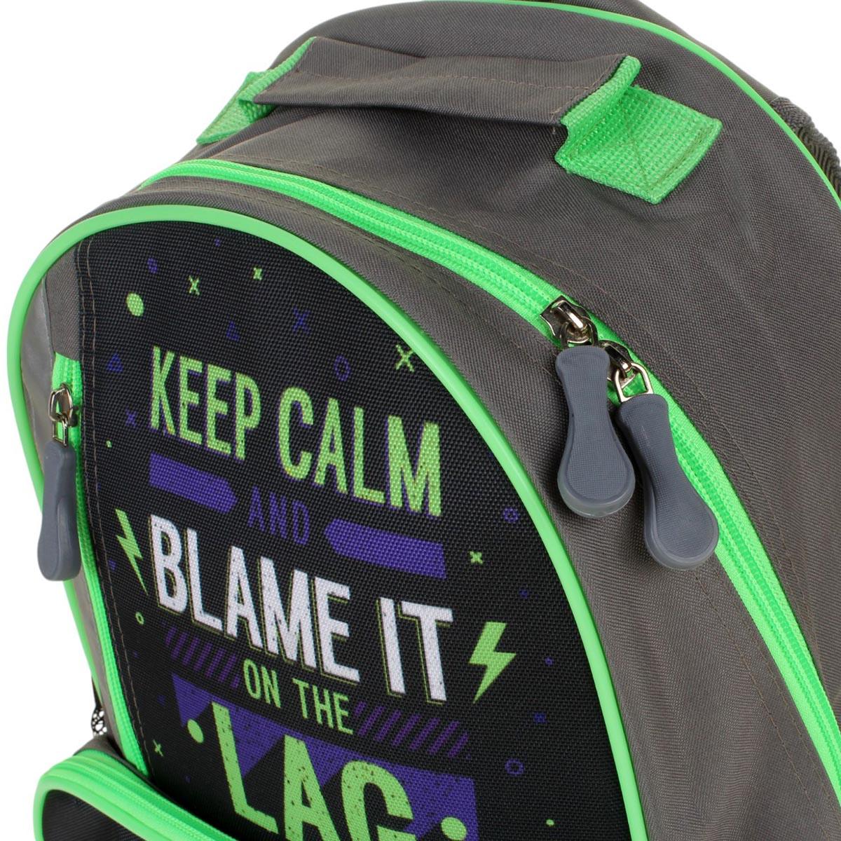 Рюкзак школьный подростковый "Геймпад", серый с зеленым, 37х26х13 см, прочный, стильный дизайн для учебы и игр