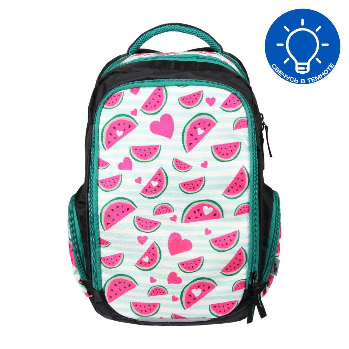 Этот стильный рюкзак станет незаменимым помощником в учебе и повседневной жизни! Яркий дизайн с арбузами и сердечками поднимет настроение, а удобная конструкция обеспечит комфорт при ношении. Рюкзак светится в темноте, что делает его заметным и безопасным в темное время суток.