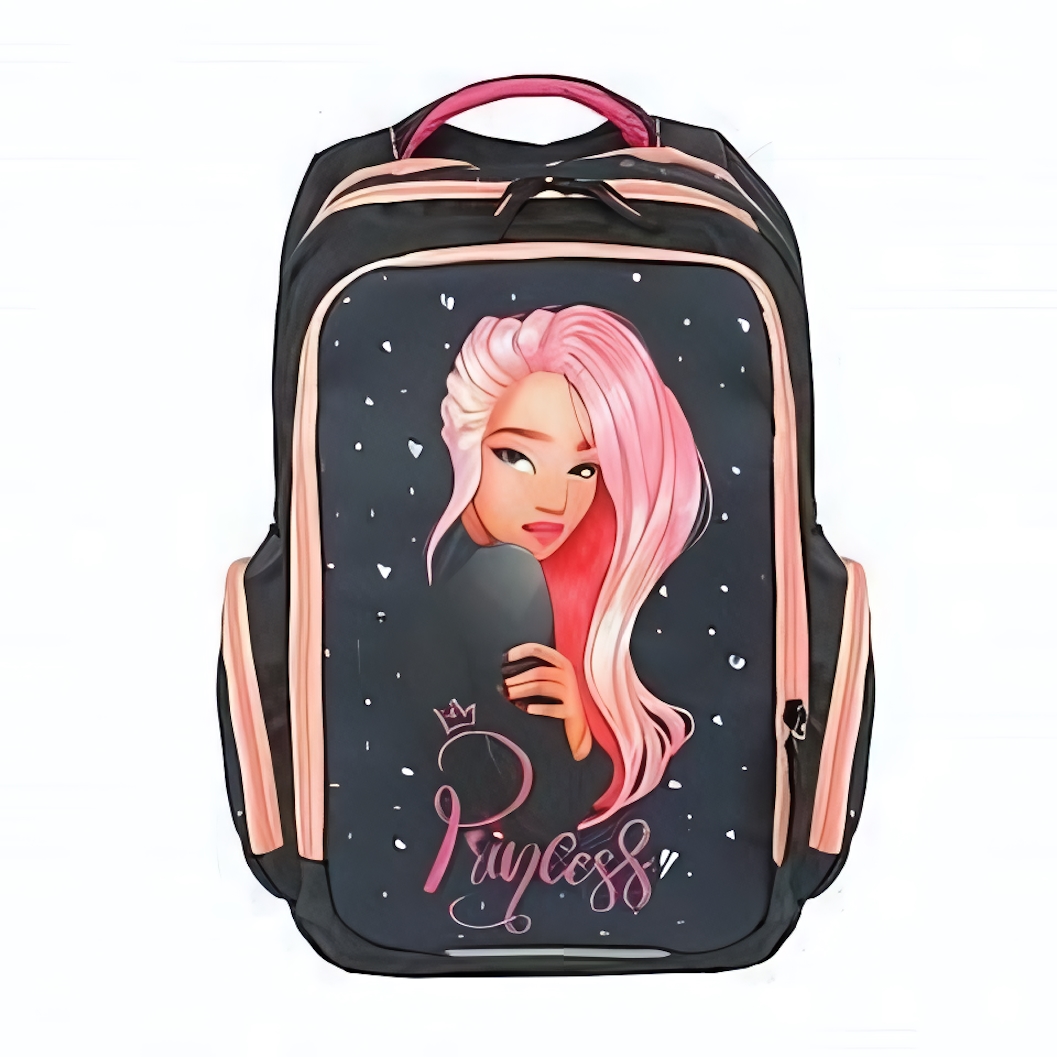 Модель создана специально для учениц среднего школьного возраста. Размер 30х44х14 см оптимально подходит для повседневной нагрузки. Дизайн с изображением девушки-принцессы дополнен стильными розовыми акцентами и звездами.