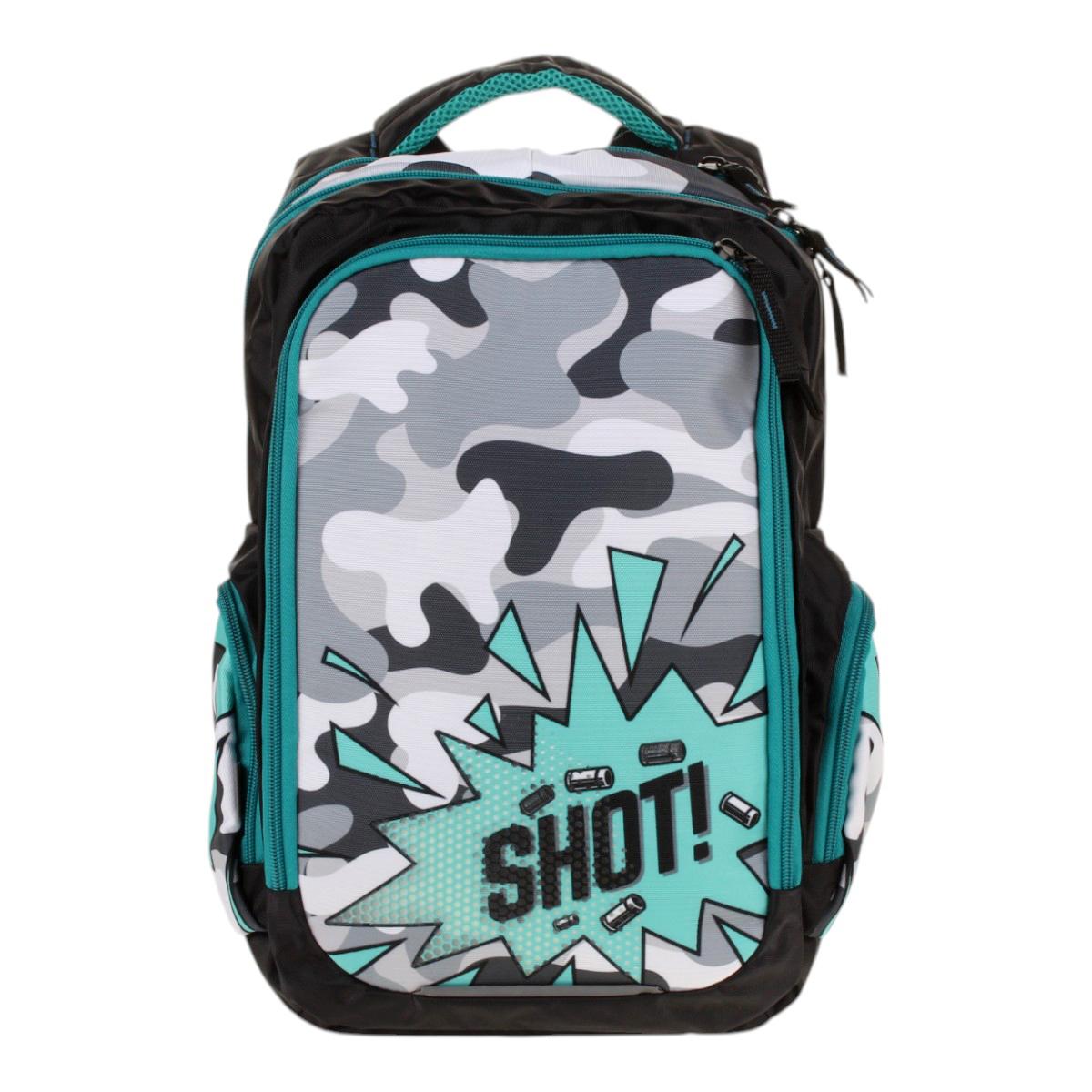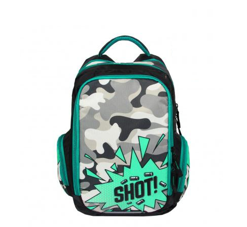 Школьный рюкзак "Камуфляж" создан для комфортного ношения учебников и личных вещей. Его яркий дизайн с элементом "SHOT!" подчеркнет индивидуальность ученика.