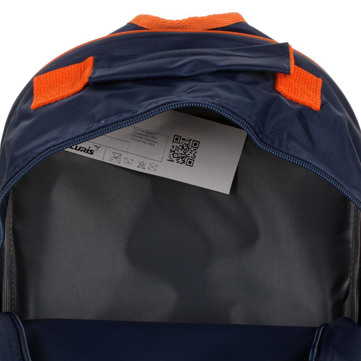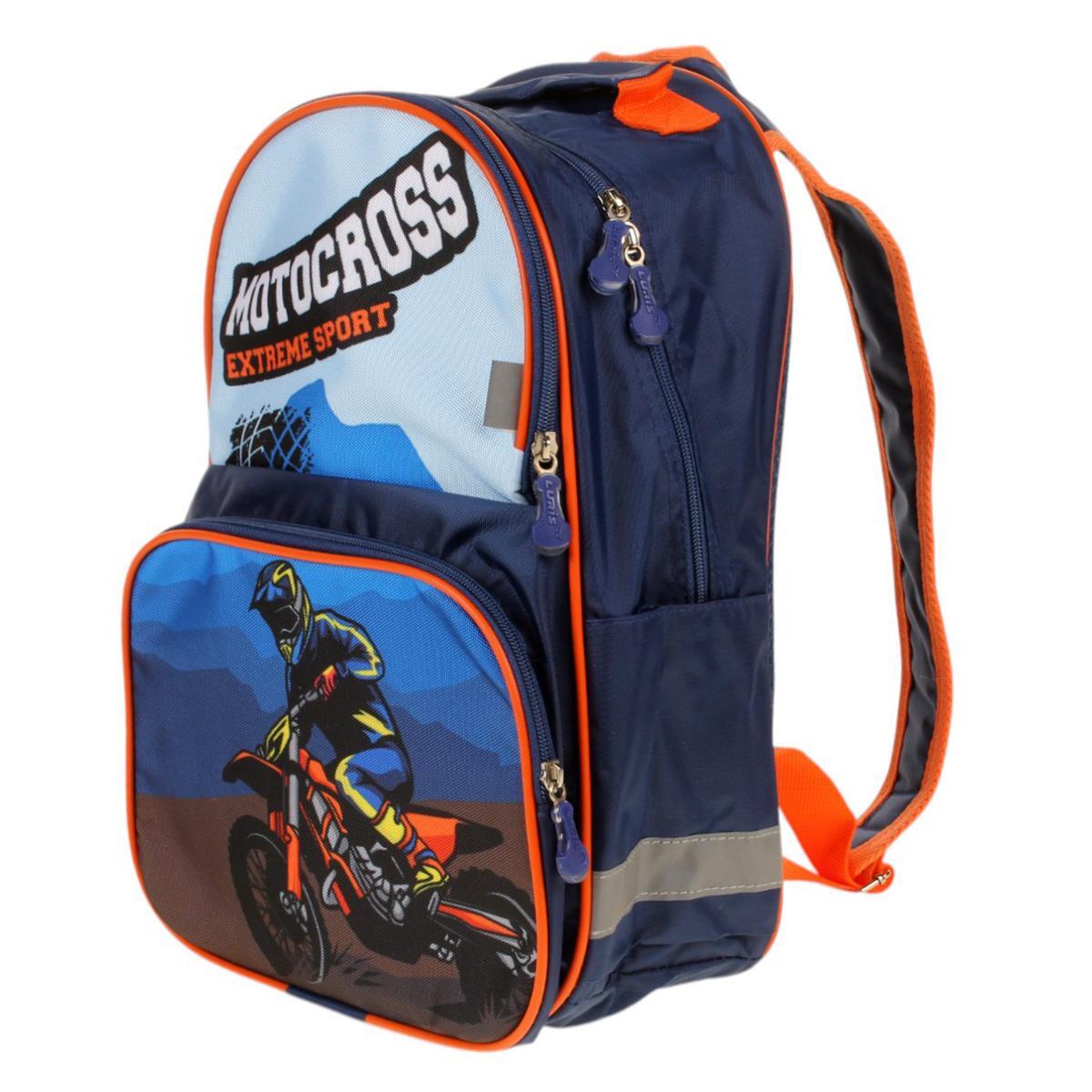 Рюкзак школьный "Мото" 37*26*13 см, синий/оранжевый, ПВХ, 2 отдела
