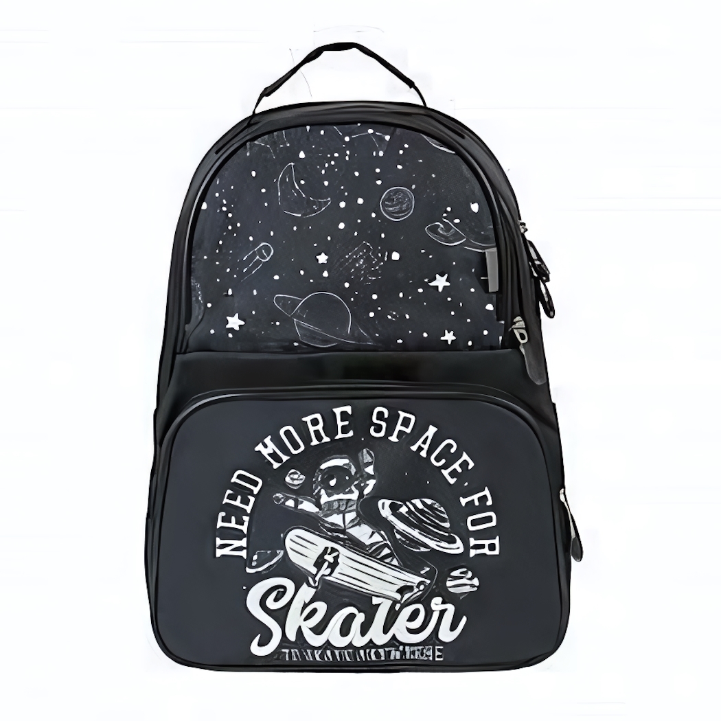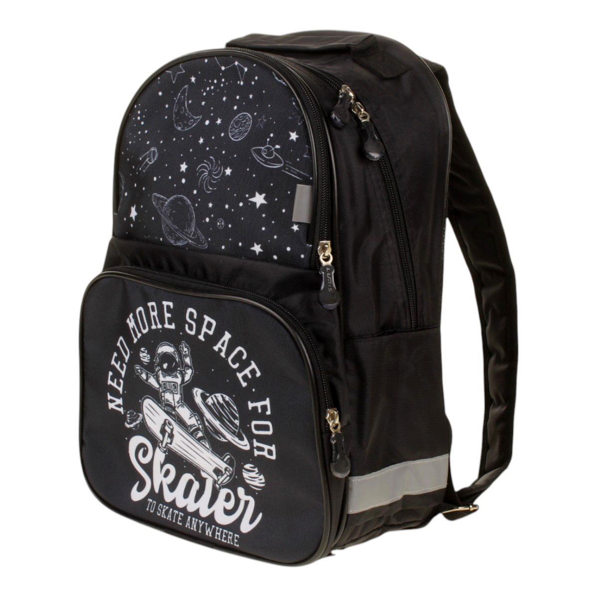 Рюкзак школьный "Скейт" 37*26*13 см, 2 отделения, непромокаемый, черный с принтом