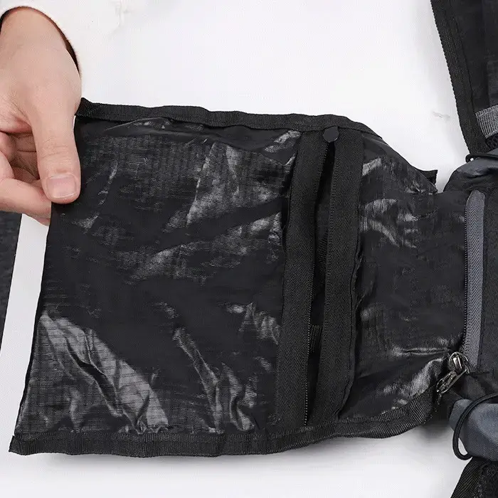 Этот рюкзак не только стильный, но и практичный. Он выполнен из прочного водоотталкивающего нейлона, что защищает ваши вещи от дождя и влаги. Внешние карманы, включая один с молнией, позволяют удобно организовать мелкие предметы, такие как ключи, телефон или документы. Боковые сетчатые карманы идеально подходят для бутылок с водой, что делает его идеальным для длительных поездок.