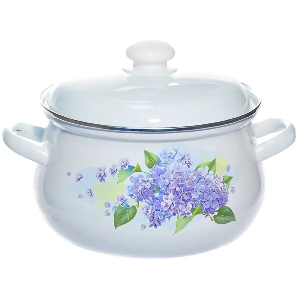 Кастрюля имеет объем 4,5 литра, что позволяет готовить большие порции. Белый цвет с фиолетовыми цветами и зелеными листьями добавляет изюминку в ваш кухонный интерьер. Округлая форма и гладкая внутренняя поверхность делают её удобной в использовании и чистке.
