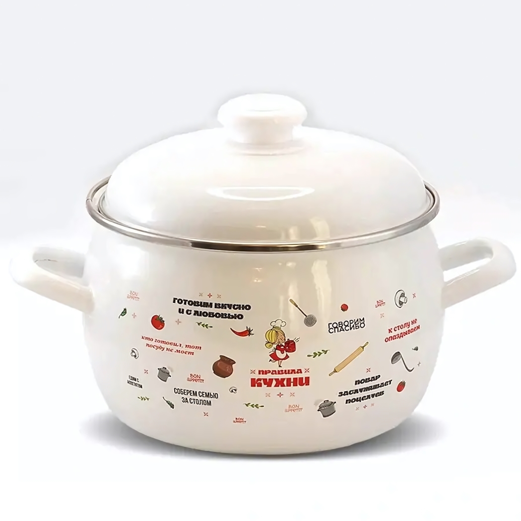 Кастрюля эмалированная 2л, сталь, декор 'Правила кухни', для всех плит