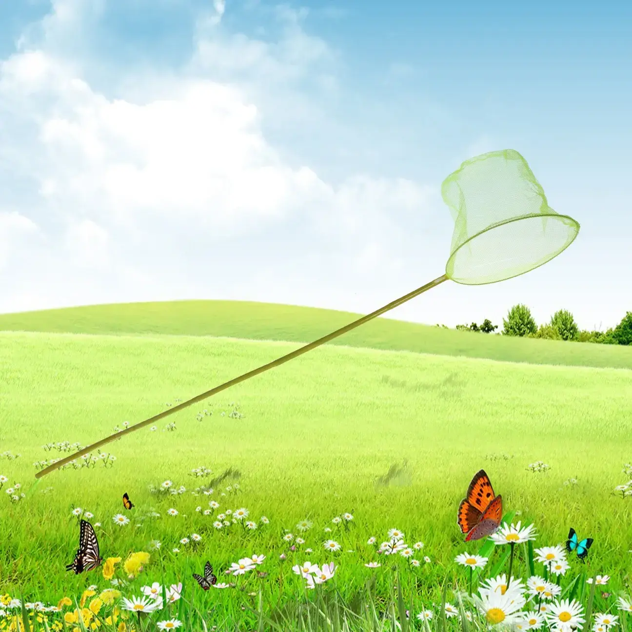 - Металлическая ручка длиной 150 см позволяет ловить бабочек без приближения