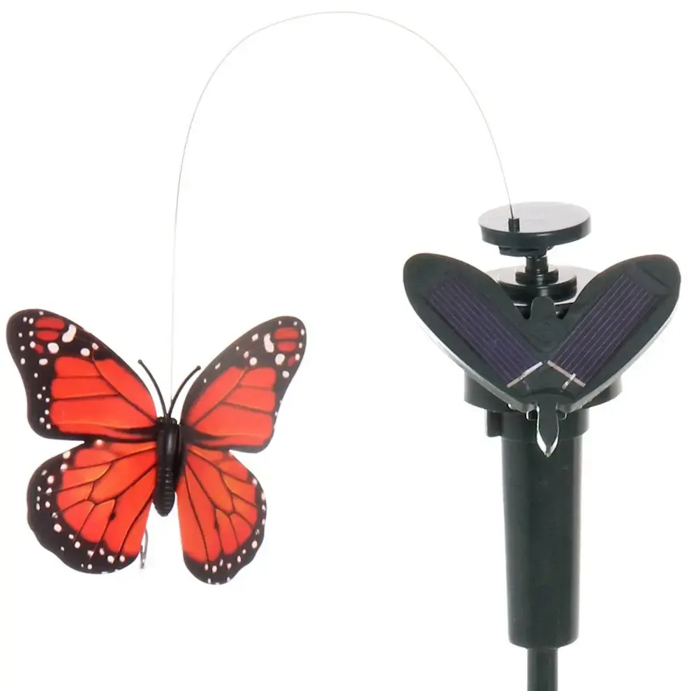 Фигура предназначена для установки в землю и работает на солнечной энергии, что делает её удобной и практичной. Просто вставьте шток в землю, и бабочка начнет двигаться при солнечном свете. Это идеальный выбор для тех, кто хочет украсить свой сад или приусадебный участок, а также для любителей оригинального декора.